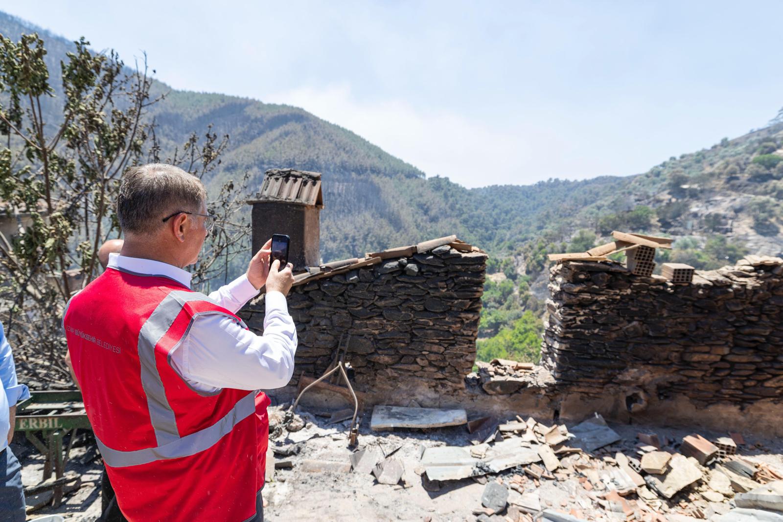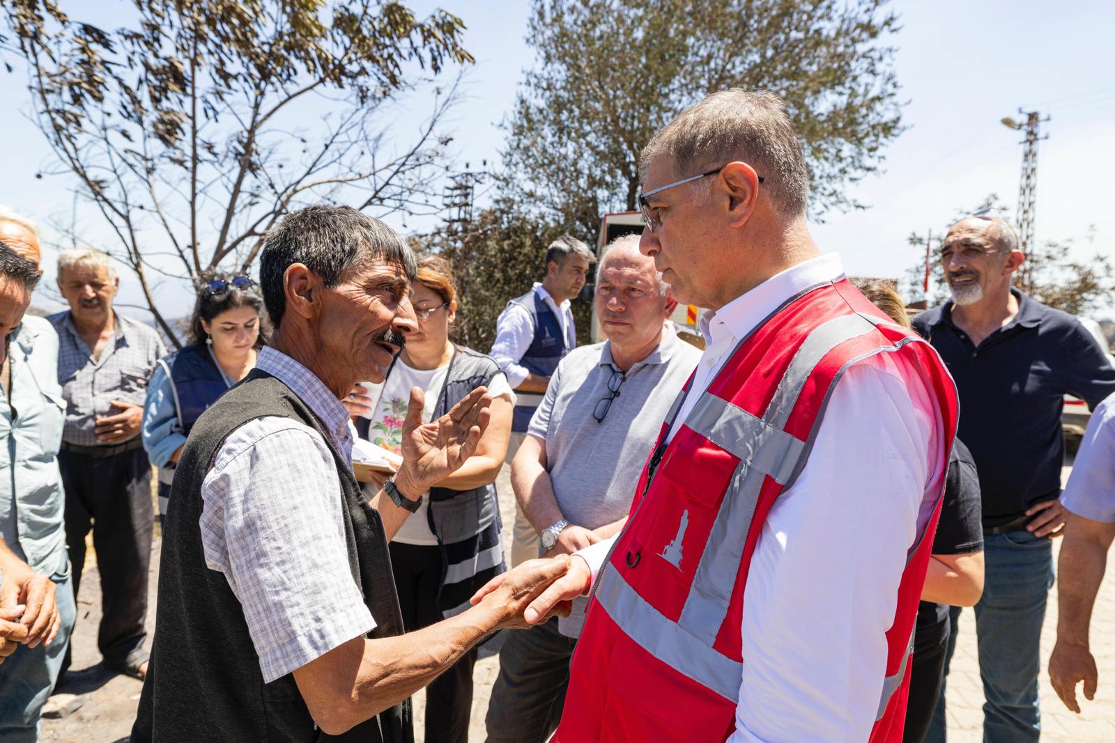 Başkan Tugay, yeni yapılacak evlerin en azından yanmayan çatılara sahip olmasını istediklerini aktararak, “Biraz önce bir vatandaşımız, ‘benim evim yanmadı, çünkü yanmayan türdendi’ dedi. Çoğu ev çatıdan gelen alev nedeniyle yanıyor. Evleri yeniden inşa ederken evleri yangına dirençli hale getirelim, köyün çevresinde yangınla ilgili önlemlerimizi artıralım. Yangının söndürme araçlarının sayısını artıralım. Bunu bütün köylerimizde yapmamız lazım. Önce yanan köylerimizden başlayalım, sonra diğer köylerimizi de bu şekilde rehabilite edelim. Bunu en önemli çalışma konularımızdan birisi olarak gündemimize alacağız” ifadelerini kullandı.
