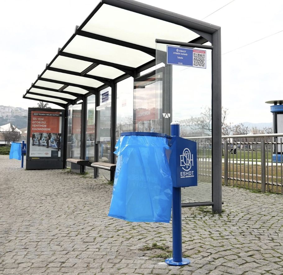 ESHOT Genel Müdürlüğü tarafından otobüs duraklarında kullanılacak yeni çöp kovalarının tasarımı tamamlandı, montaj çalışmalarına başlandı. Kentlilerin en yoğun kullandığı alanlardan biri olan otobüs duraklarında daha düzenli, temiz ve estetik bir ortam oluşturmayı amaçlayan çalışma kapsamında, İzmir genelinde 3 bin 150 adet çöp kovasının üretimi ve montajı planlanıyor. Pratik kullanım ve kolay bakım esas alınarak tasarlanan pota tipi çöp kovalarında, çöp poşetleri rahatlıkla değiştirilebiliyor. Çöp kovalarında sigara izmaritleri için ayrı bir bölüm, diğer atıklar için ise ayrı bir alan bulunuyor. Mavi-beyaz renklerde tasarlanan çöp kovaları, ESHOT’un nazar boncuklu otobüsleriyle görsel bir bütünlük oluşturuyor. Böylece durak çevrelerinde hem işlevsel hem de kent kimliğiyle uyumlu bir görünüm hedefleniyor.