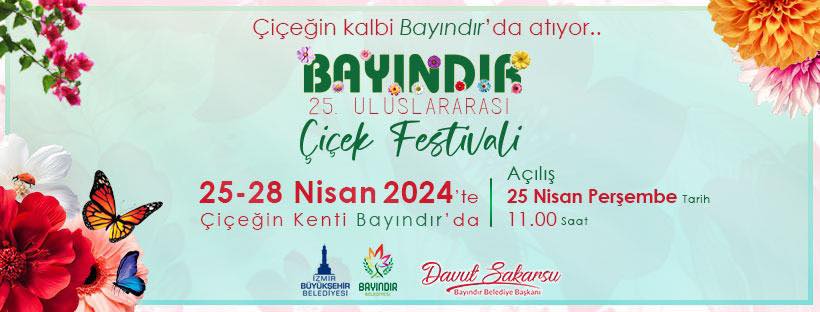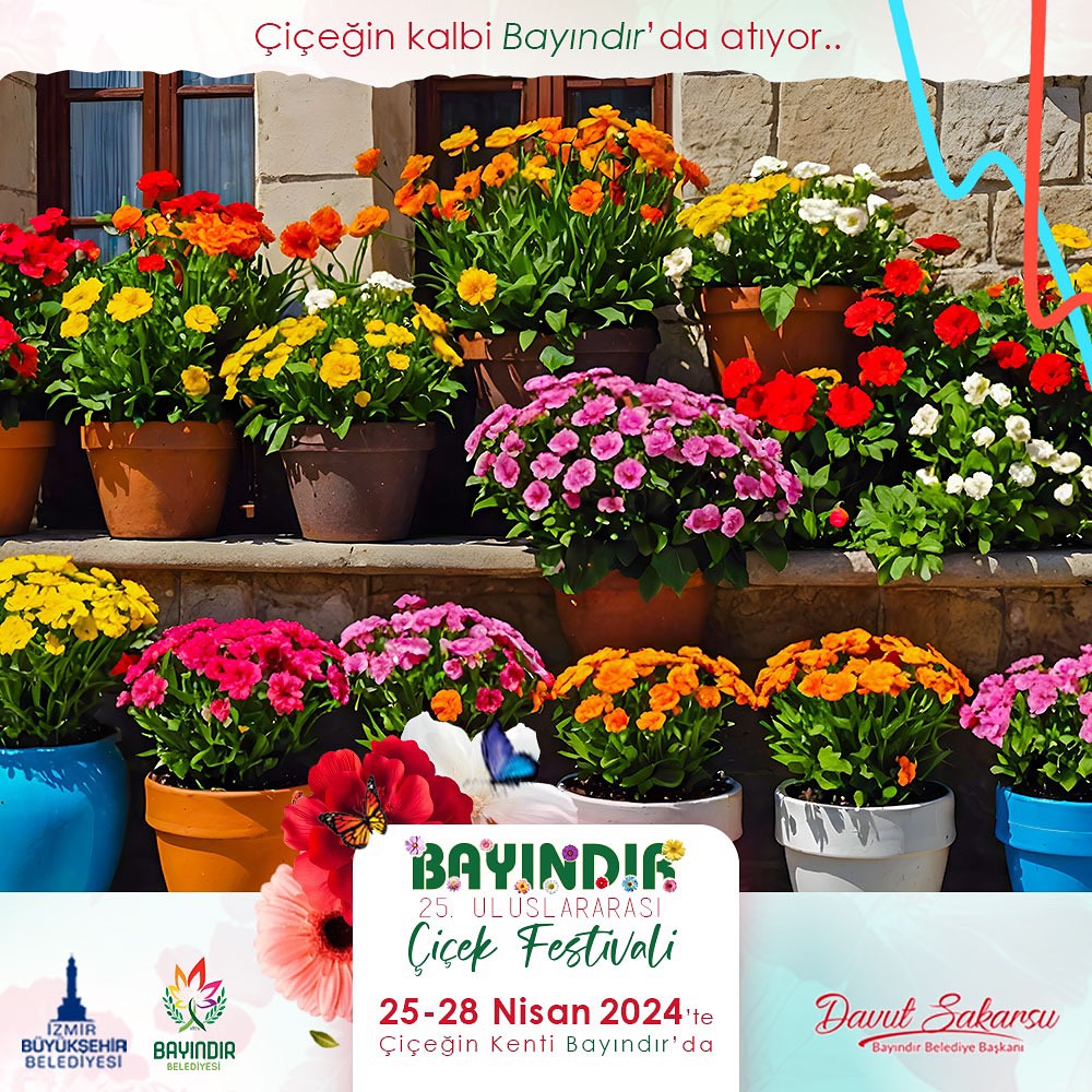 25'nci Uluslararası Bayındır Çiçek Festivali, 25 Nisan Perşembe günü saat 11.00'de Bayındır Şehir Stadyumu’na yapılacak açılış töreni ile başlayacak. Festival süresince performans sanatçıları, halk oyunu ekiplerinin gösterileri devam edecek. Alanı ziyarete gelenler, hazırlanan fotoğraf çekim alanında 25'nci Uluslararası Bayındır Çiçek Festivalini ölümsüzleştirebilecekler.