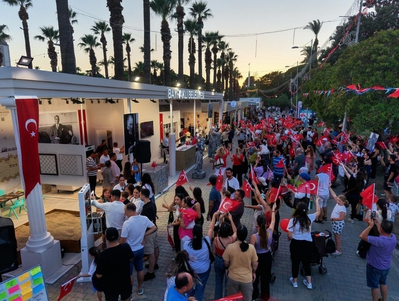 Öte yandan, Zafer Bayramı Bayraklı Belediyesi'nin İzmir Enternasyonal Fuarı’ndaki standında da büyük coşkuyla kutlandı. Soğuk heykellerin performansı, müzik dinletisi, yapay zeka destekli 30 Ağustos fotoğraf çalışması, müzik dinletisi ve halk oyunları gösterileri vatandaşlara unutulmaz anlar yaşattı. Vatandaşlar, stantta dağıtılan Türk bayraklarıyla hep bir ağızdan marşlar okuyarak renkli görüntüler oluşturdu.