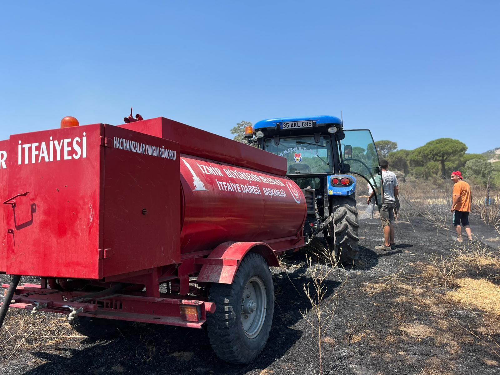 İzmir'in Bergama ilçesine bağlı Yukarıbey ile Hacıhamzalar mahallelerinde sabah saatlerinde çıkan orman yangını, İzmir Büyükşehir Belediyesi İtfaiye Dairesi Başkanlığı ve İzmir Orman Bölge Müdürlüğü ekiplerinin koordineli çalışmaları sonucu kontrol altına alındı. Havadan ve karadan yoğun müdahalenin yapıldığı ve İzmir Büyükşehir Belediyesi'nin dağıttığı yangın tankerlerinin söndürme çalışmalarına destek verdiği yangının yerleşim alanlarına sıçraması engellendi. Terzihaliller, Göbeller, Aşağıcuma ve Karaveliler mahalle muhtarları ve gönüllüleri de tankerlerin sahada etkin kullanılmasına destek verdi. Yangında yaklaşık 16 hektarlık alanın zarar gördüğü tahmin ediliyor. Yangın bölgesinde tekrar alevlenme riskine karşı ekiplerin soğutma çalışmaları devam ediyor.
