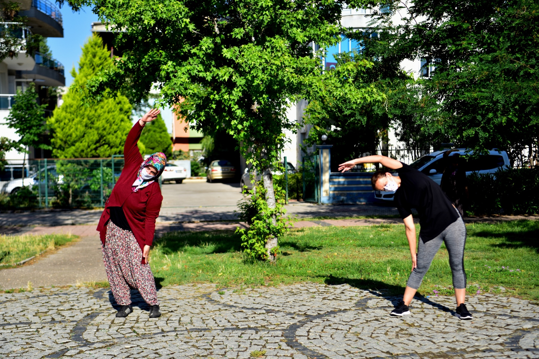 Maskelerini takan kadınlar sosyal mesafe kurallarına uygun şekilde profesyonel antrenörler eşliğinde çalıştı. Step, aerobic, pilates ve yoga kursları normalleşme süreci boyunca aynı şekilde devam edecek.