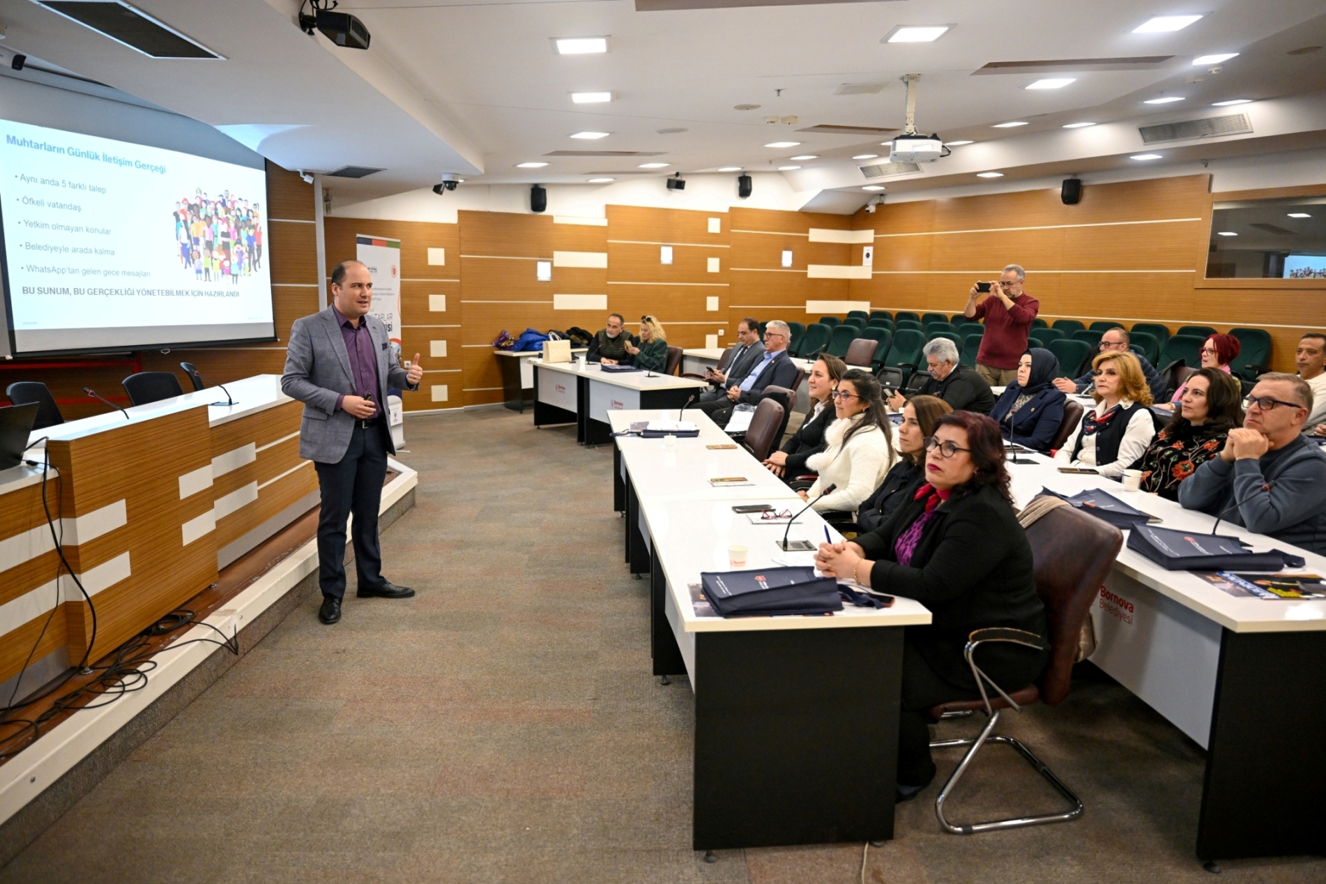 “Muhtarlarımız, mahallelerimizde vatandaşla kamu arasında en güçlü bağı kuran, demokrasinin en temel temsilcileridir. Onların bilgiyle, iletişim becerisiyle ve dijital donanımla güçlenmesi Bornova’nın tamamına değer katar. Muhtarlarımızı yalnız bırakmayan, sürekli gelişimlerini destekleyen bir yerel yönetim anlayışıyla çalışmaya devam edeceğiz.” diye konuştu.