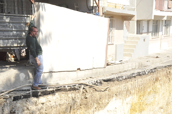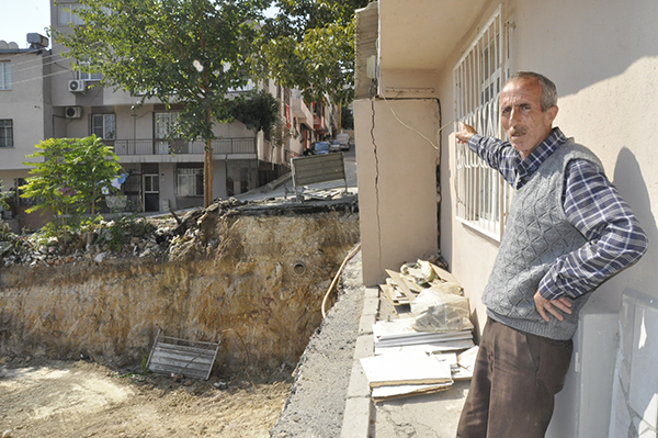 Olay, Sevgi Mahallesi 4650 sokakta meydana geldi. Yeni bina yapmak için işe başlayan müteahhit, bölgeye iş makineleri gönderdi. Belediyeden aldığı izin doğrultusunda sokağın yolunu da inşaata dahil ede müteahhit, diğer binaların giriş kapılarına kadar inşaatını birleştirdi. Yapılan kazı çalışması sonrasında çevredeki binalar da zarar görürken, vatandaş yaptığı tüm şikayetlere cevap bulamadı.