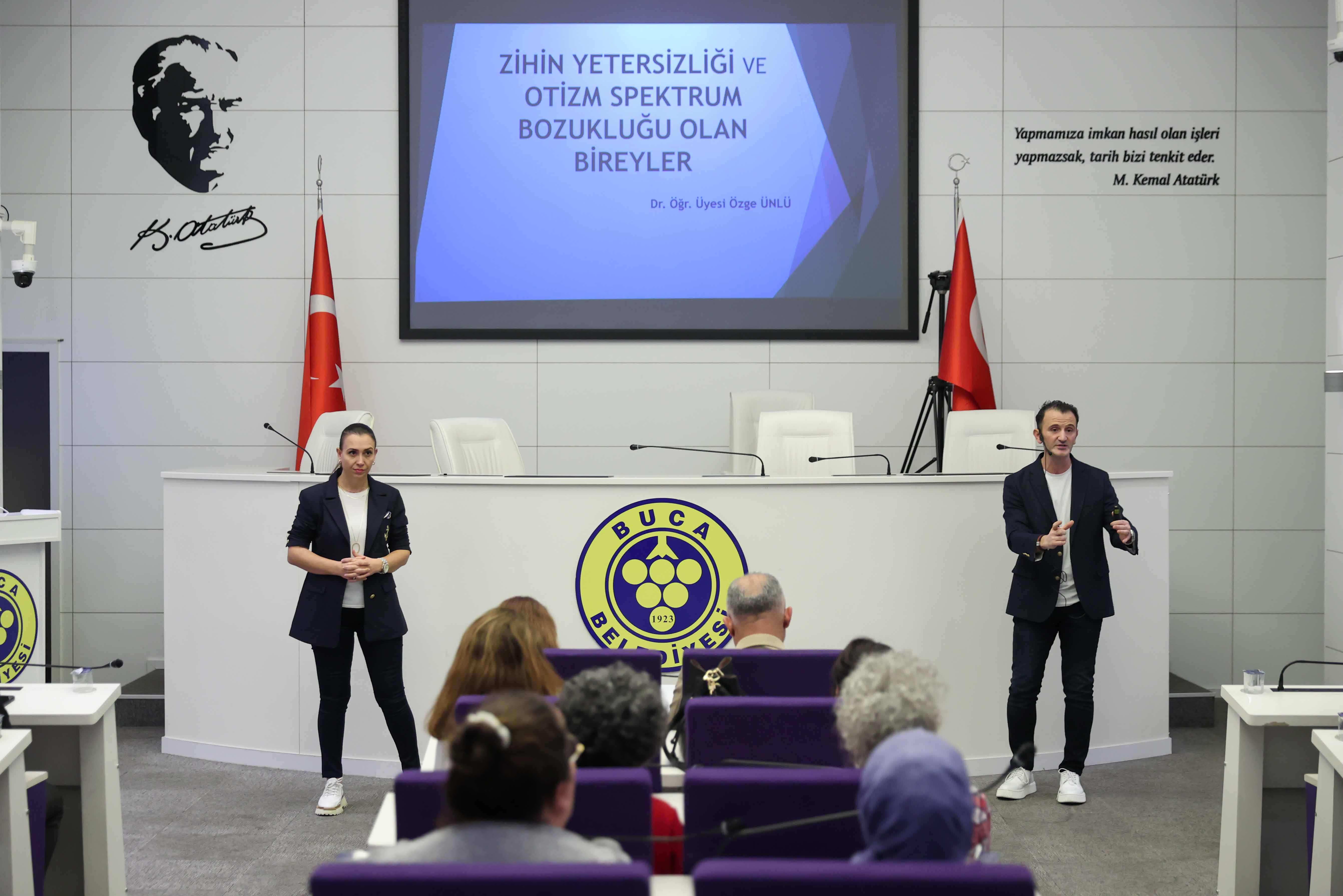 Buca Belediyesi, hizmet kalitesini artırmak ve dezavantajlı bireylere yönelik farkındalığı artırmak amacıyla personeline yönelik “Zihin Yetersizliği ve Otizm Spektrum Bozukluğu Olan Bireyler” eğitimi düzenledi. İzmir Demokrasi Üniversitesi Eğitim Fakültesi Özel Eğitim Bölümü Öğretim Üyeleri Dr. Özge Ünlü ve Doç. Dr. Emre Ünlü’nün konuşmacı olarak yer aldığı eğitim, Otizm Konfederasyonu iş birliği ile gerçekleştirildi.