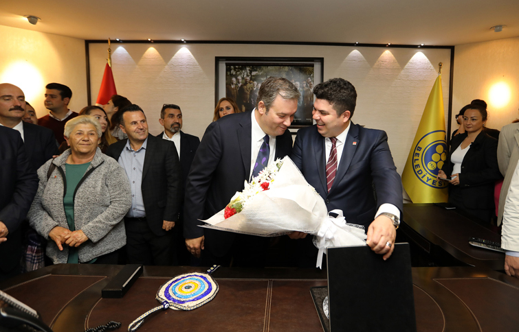 31 Mart Yerel Seçimleri’nde Buca Belediye Başkanı seçilen ve mazbatasını hafta sonu Buca İlçe Seçim Kurulu’ndan teslim alan Erhan Kılıç başkanlık görevini devralmak için Buca Belediyesi’ne geldi. Buca Belediye eski Başkanı Levent Piriştina ve partililer tarafından coşkuyla karşılanan Buca Belediye Başkanı Erhan Kılıç, destek veren herkese teşekkür etti. Eski Başkan Piriştina’ya özel olarak yapılan plaketi veren Kılıç, “5 yıl boyunca sayın başkanımızla beraber çok güzel bir mesai geçirdik. O dönemde ben de kendisinin meclis üyesiydim. Ve o mecliste başkanımızın söylediği gibi ‘Ya biz olacağız ya o meclisten bir başkan çıkacak” dedi ve söylediği oldu. 2 aydan beri bizimle birlikte mücadele eden herkese çok teşekkür ediyorum. Başkanımıza Buca’da vermiş olduğu sosyal belediyecilik mücadelesinden dolayı da tekrar teşekkür ediyorum” dedi.