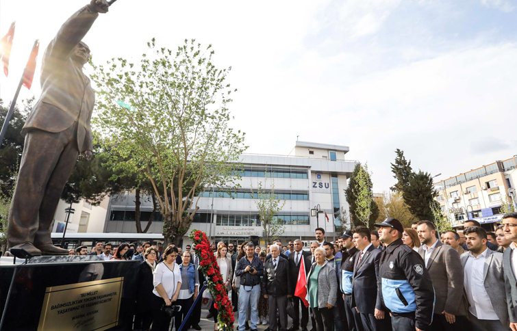 Buca Belediye Başkanı Erhan Kılıç Devir teslim töreninin ardından yüzlerce Bucalıyla birlikte Çevik Bir Meydanı’nın da Atatürk Heykeline çelenk sundu.