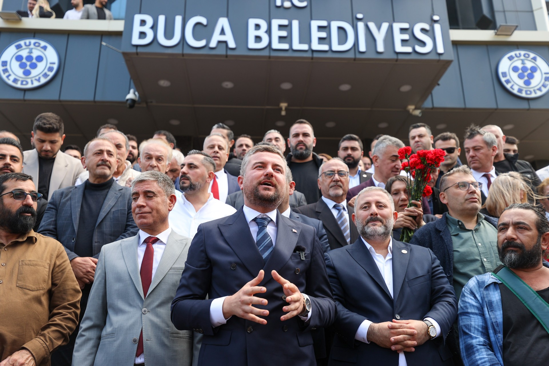 Herkesi kucaklayan bir yönetim anlayışı ile hizmet edeceğini belirten Başkan Duman, "Dün mazbatamızı aldık, bugün devir teslimi de gerçekleştirdik. Şimdi Buca'ya hizmet zamanı. Siyasi partili kimliğimizi ikinci plana bırakıyoruz. Bana oy versin veya vermesin tüm Bucalıarın belediye başkanı olacağım" dedi.