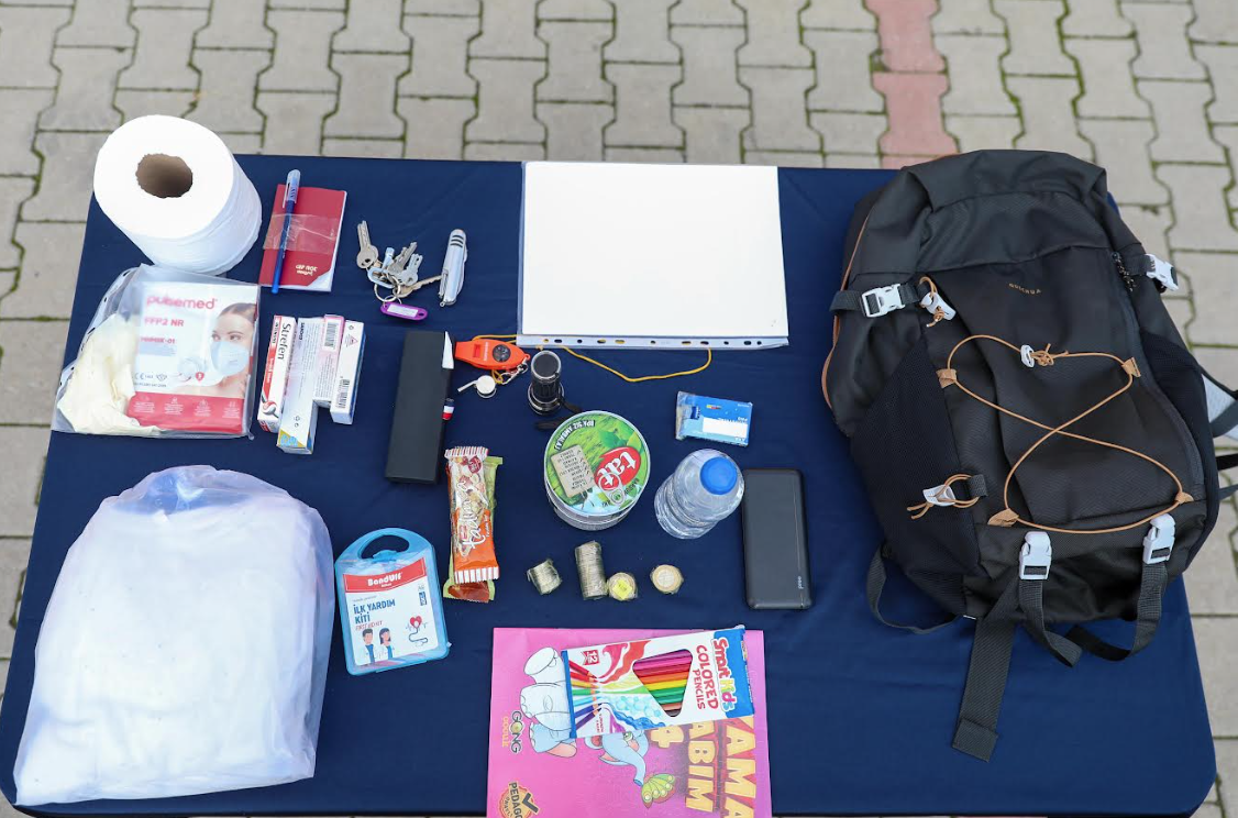 “Deprem çantası içerisinde afet durumunda ihtiyaç duyulabilecek tüm malzemelerin bulunması önem taşımaktadır. Tüm aile üyelerine yetecek ölçüde su, yüksek kalorili gıda, hijyen malzemeleri, önemli belge fotokopileri, ilkyardım malzemeleri ve mevsim şartlarına uygun giyeceklerin deprem çantasına konulması gerekmektedir. Kullandığımız ilaçlar reçeteleri ile bulundurulmalı, enerji kesintisi sorunları yaşanacağı için taşınabilir şarj aleti ve pil yer almalıdır. Doğru bilgi almak adına bir radyo, el feneri, yardım ekiplerine hızlı bir şekilde sesli uyarıda bulunabilmek için düdük bulundurulmalıdır. Çantamıza koyacağımız çok amaçlı bir çakı, afet sonrası bize önemli bir kolaylık sağlayabilir. Bankacılık sisteminde yaşanacak sorunlardan etkilenmemek için çantamızda nakit para olmalıdır. Ayrıca, evimizin ve araçlarımızın yedek anahtarları da afet çantasında bulunması gereken önemli kalemlerden biridir.”