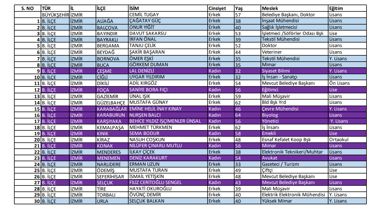 İŞTE CHP'NİN İZMİR İLÇE ADAYLARI