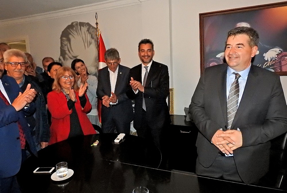 Cumhuriyet Meydanı'ndaki kutlama töreninin ardından vatandaşların sevgi gösterileri arasında Çeşme Belediyesi'ne giden Başkan Oran'ı, belediye çalışanları alkışlarla karşıladı. Belediye Başkan Vekili Banu Ayhan da, Başkan Oran'a bir buket çiçek vererek görevinde başarılar diledi.