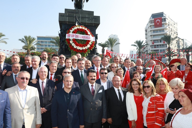 Cumhuriyetimizin kuruluşunun 96. yıldönümü için CHP İzmir İl Başkanlığı tarafından çelenk sunum ve kutlama töreni düzenlendi. Cumhuriyet Meydanında gerçekleşen kutlama törenlerine katılan İzmirlilerin coşkusu görülmeye değerdi.