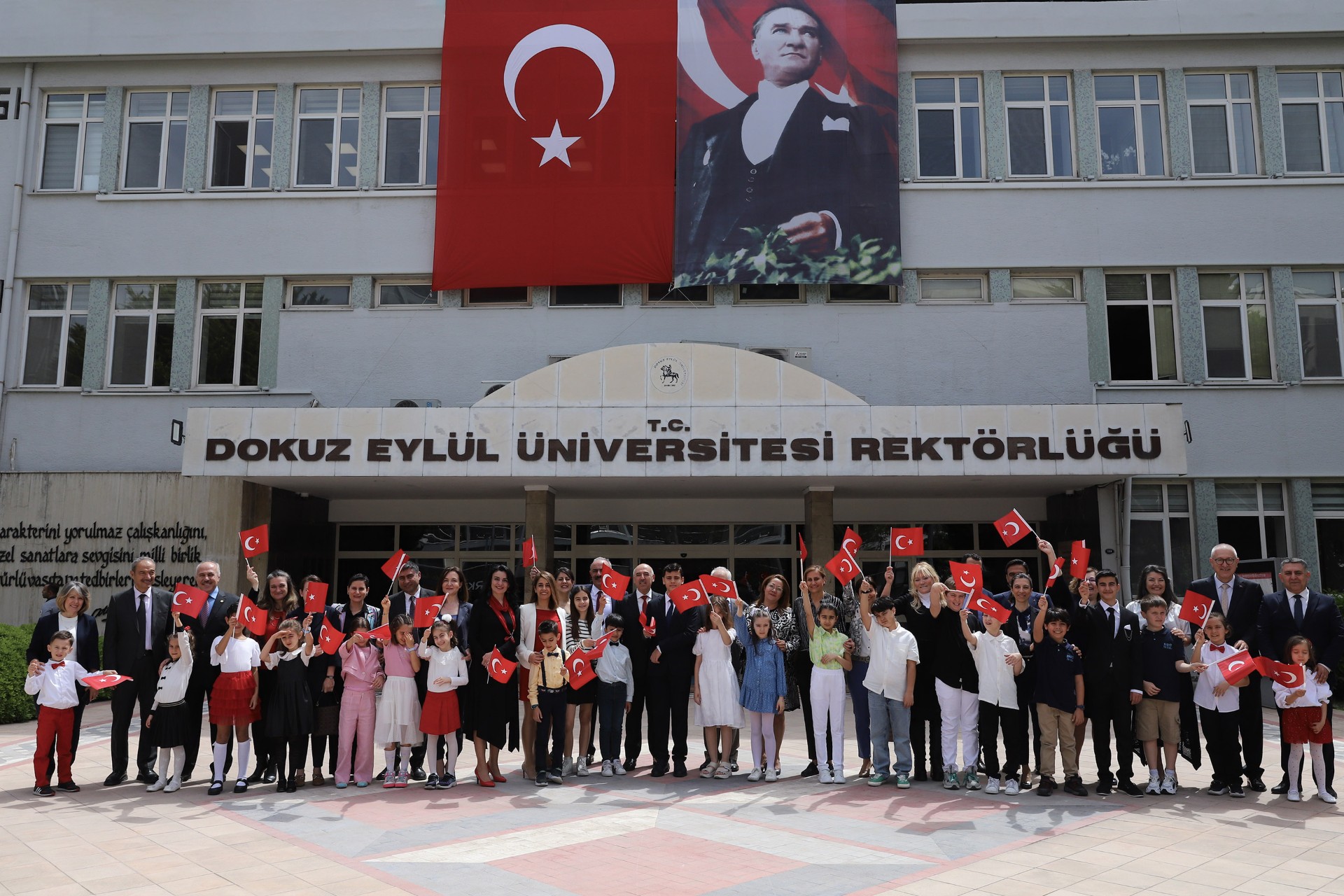 Türkiye Büyük Millet Meclisi’nin (TBMM) açılışının 104’üncü yılı ile 23 Nisan Ulusal Egemenlik ve Çocuk Bayramı nedeniyle olağanüstü gerçekleştirilen Dokuz Eylül Üniversitesi (DEÜ) Yönetim Kurulu Toplantısı’na, DEÜ’nün 75. Yıl Eğitim Kurumları'nda öğrenim gören ana sınıfı, ilkokul ve ortaokul düzeyindeki öğrenciler katıldılar. Toplantıya öğretmenleri ve okul yöneticileriyle birlikte katılan öğrenciler, DEÜ Rektörü, Üst Yönetimi ve dekanların yerine geçtiler; barış mesajları eşliğinde mutlu ve güvenli bir dünya dileklerini yönetim kurulu gündemine sundular. Önerileri oy birliği ile kabul edilen öğrenciler, 23 Nisan’ı coşku içinde kutladılar.