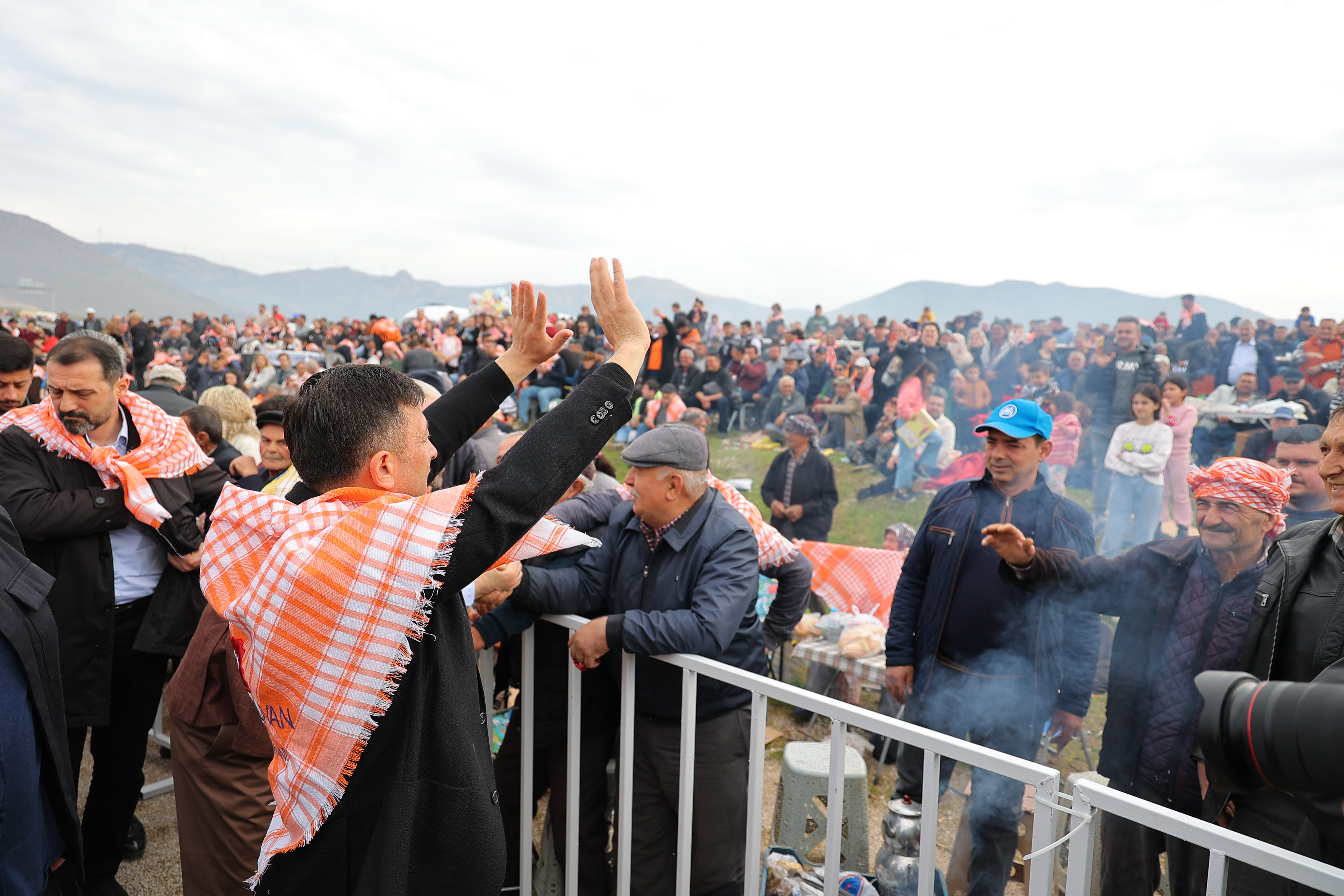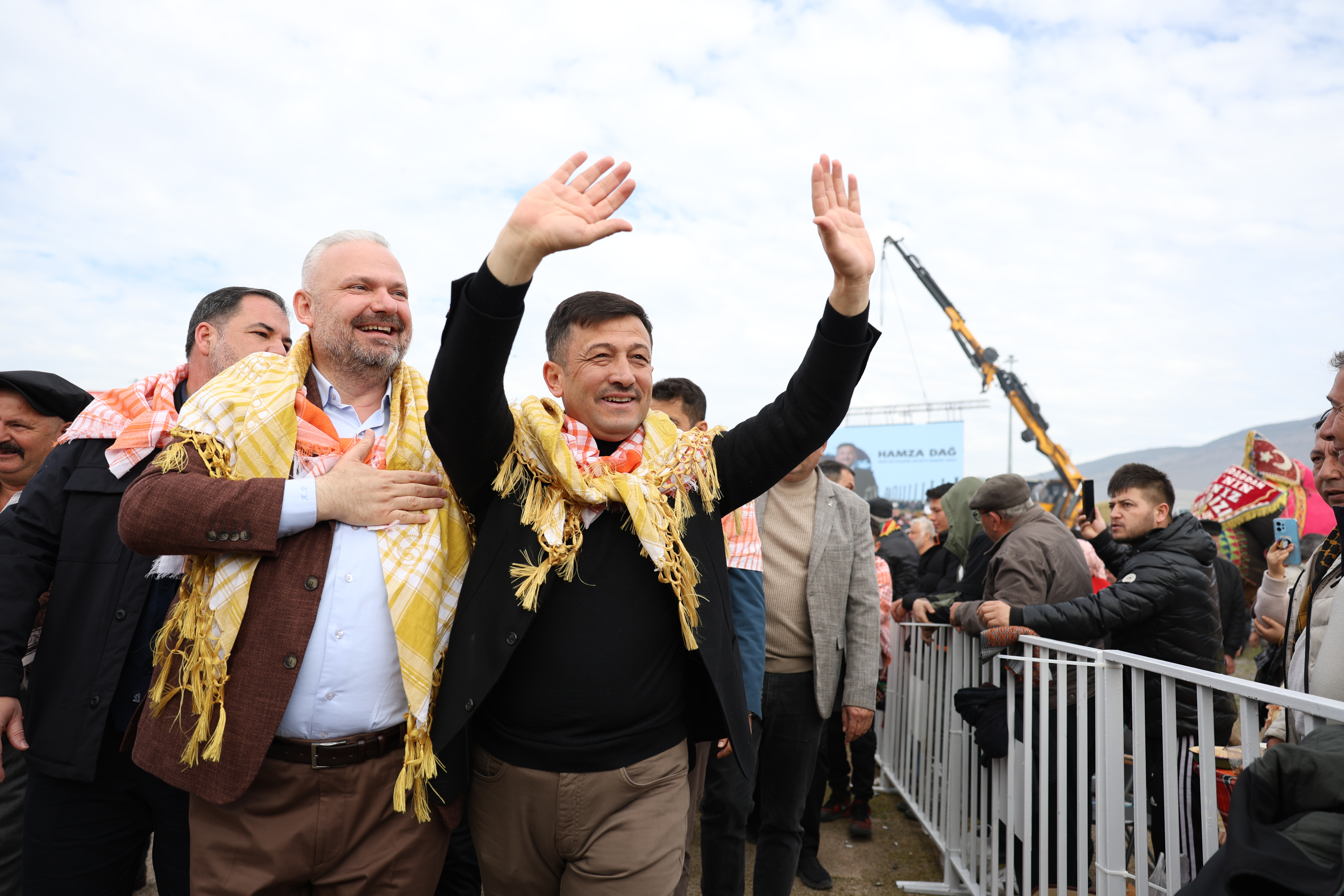 Deve güreşlerinin yapılacağı sahaya girerek halkı selamlayan Dağ, burada vatandaşlarla kucaklaştı, sohbet etti.