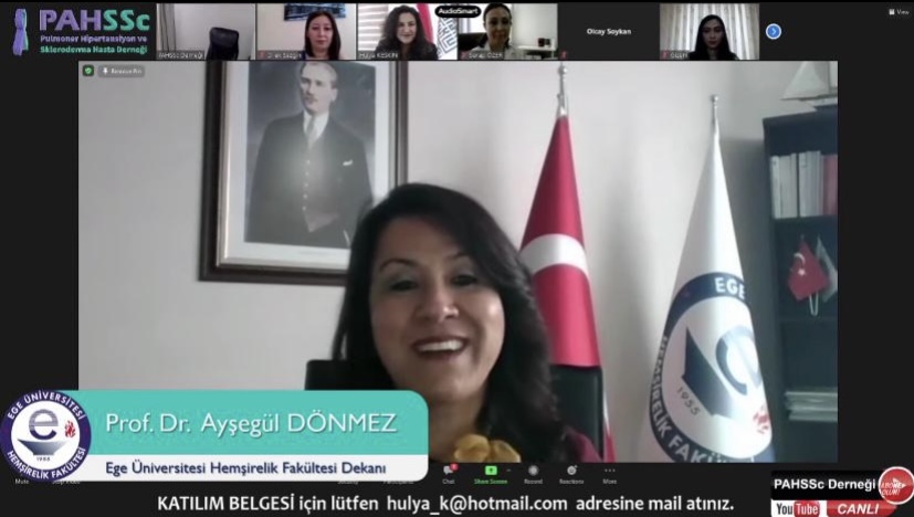 Ege Üniversitesi Hemşirelik Fakültesi ev sahipliğinde Dokuz Eylül Üniversitesi Hemşirelik Fakültesi, Mardin Artuklu Üniversitesi Sağlık Bilimleri Fakültesi ile Pulmoner Hipertansiyon ve Skleroderma Hasta Derneği iş birliğinde “I. Nadir Hastalıklarda Farkındalık Sempozyumu- Skleroderma” etkinliği düzenlendi. Online olarak düzenlenen sempozyuma EÜ Hemşirelik Fakültesi Dekanı Prof. Dr. Ayşegül Dönmez, Dokuz Eylül Üniversitesi Hemşirelik Fakültesi Dekanı Prof. Dr. Şeyda Seren İntepeler, Mardin Artuklu Üniversitesi Sağlık Bilimleri Fakültesi Dekanı Prof. Dr. Serhat Harman, Pulmoner Hipertansiyon ve Skleroderma Hasta Derneği Başkanı Kamil Hamidullah, akademisyenler ve öğrenciler katıldı.