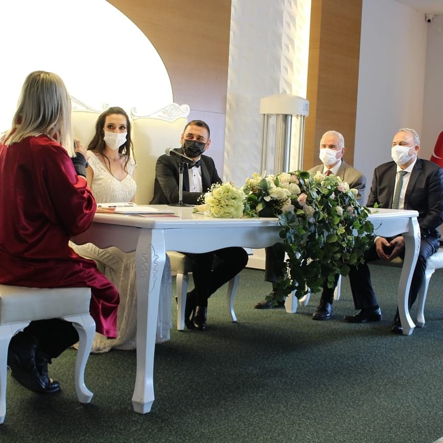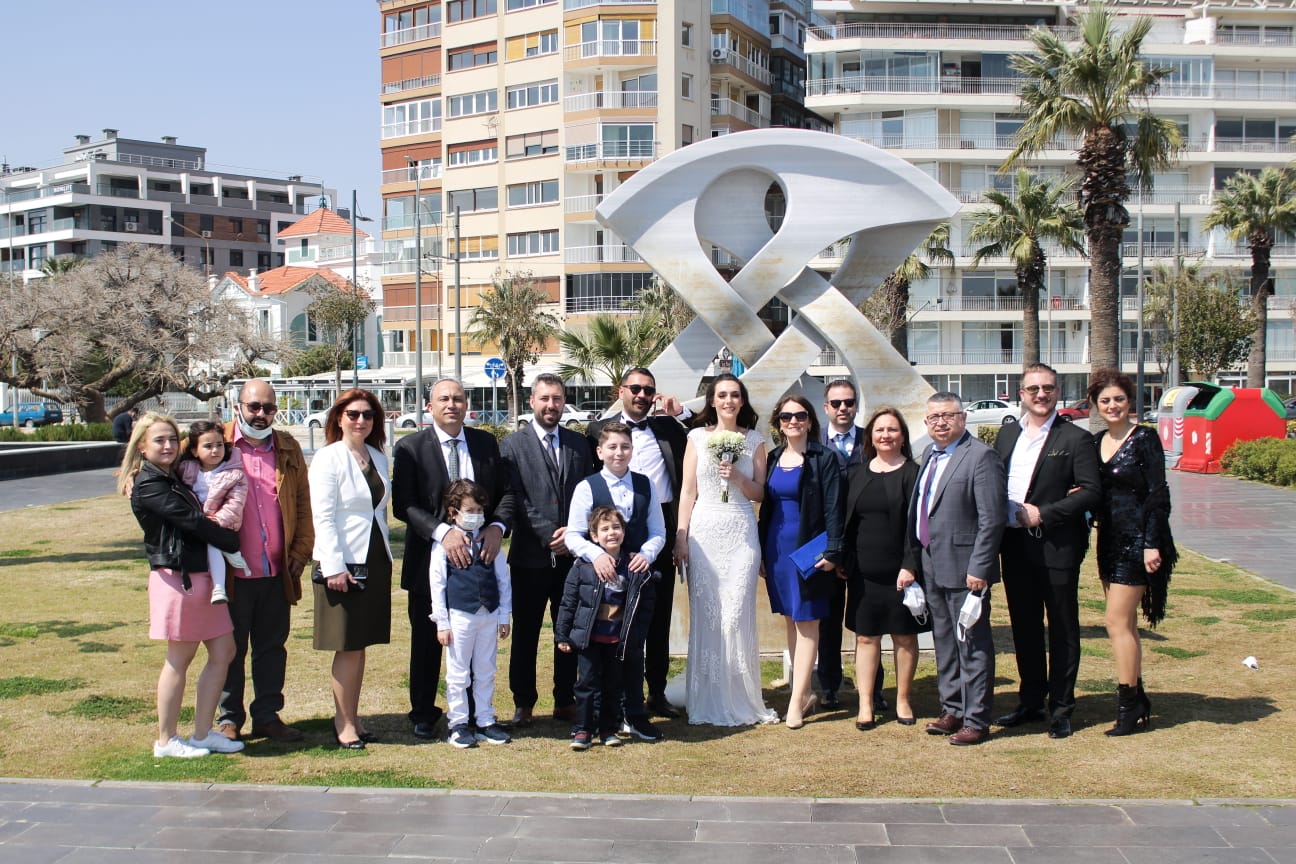 Karşıyaka Zübeyde Hanım Evlendirme Dairesinde seçkin davetlilerin katılımıyla hayatlarını birleştiren genç çifti bu mutlu günlerinde dost ve akrabaları yalnız bırakmadı. Sosyal mesafe kuralları çerçevesinde kıyılan nikah, Karşıyaka MHP İlçe Başkanı Akif Yılmaz, Başkan Yardımcısı Serdar Kılıç, Foça Belediye Başkan Yardımcısı Göksel Acar ve Bellima Turizm sahibi Mehmetcan Özdemir’in yanı sıra yüze yakın seçkin davetli katılırken nikaha gelemeyen yakınları çelenk yollayarak genç çifte mutluluk dileklerini iletti.
