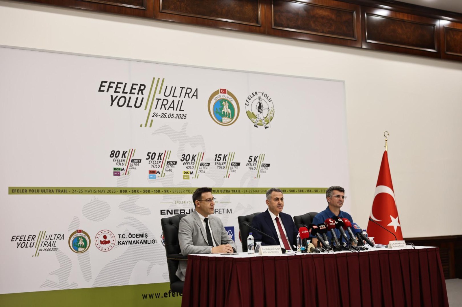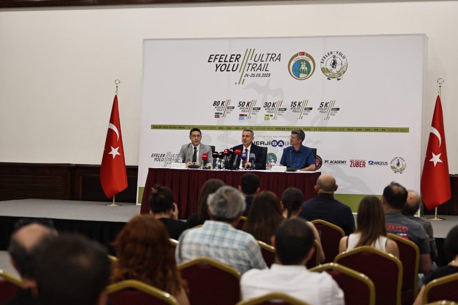 Vali Dr. Süleyman Elban, Efeler Yolu Ultra Trail’in 5 ayrı parkurda koşulacağını hatırlatarak, “80K, 50K, 30K, 15K ve 5K parkurlarımız mevcut. 256 sporcu 6 ülkeden müracaat etti. Bu ilk yapılan bir ultra maraton olmasına karşın olağanüstü bir rakam. İnşallah keyiflice sağlık içerisinde tüm etapları sporcularımız koşar ve güzel bir deneyim yaşarlar. Pazar günü de ödül törenimiz olacak çocuklarımızın katılacağı bir de koşu yapacağız. Hem farkındalık oluşsun hem bir hoşluk oluşsun diye böyle de bir yarışımız olacak. Bu vesileyle sizleri ve sizin aracılığımızda tüm kamuoyunu başta İzmirli hemşehrilerimiz olmak üzere herkesi maraton etaplarını izlemeye, oradaki diğer etkinliklere katılmaya davet ediyorum. Gelecek yıl yine bu dönemde yapmayı planladığımız ikincisinin daha olağanüstü ve daha çok katılımlı olmasını bekliyoruz. Ekonomik canlılığın, turizm hareketinin zirveye ulaşmasını arzuluyoruz” diye konuştu.