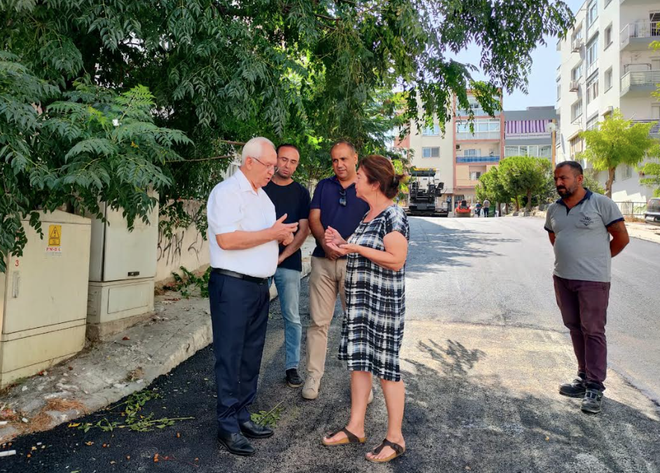 Yine aynı mahallede 52/53 Sokak'taki asfaltlama çalışmalarını inceleyen Başkan Selvitopu, yakıcı güneş altında ter döken Fen İşleri Müdürlüğü ekipleriyle buluştu. Rekor sıcaklıkların yaşandığı bugünlerde zor bir görevin başarıyla yürütüldüğünü belirten Başkan Selvitopu, “Hepinize ayrı ayrı teşekkür ediyorum. Karabağlar için birlikte çalışmaya ve hizmet üretmeye devam edeceğiz” dedi.