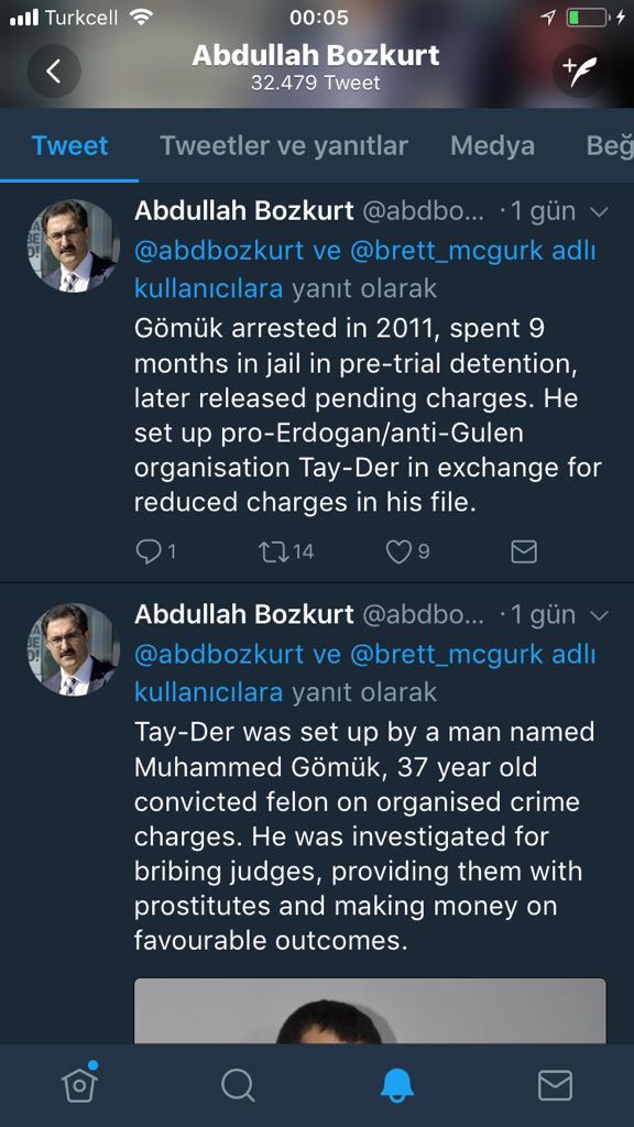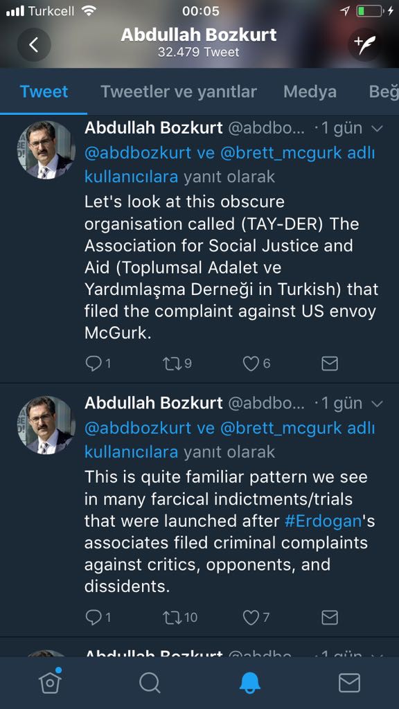 Önce İsveç'te kendisine ev vermeyen Türkleri, daha sonra da ABD Başkanı Donald Trump'ın Kudüs'ü İsrail'in başkenti olarak tanıma kararını protesto eden Müslümanları sosyal medya üzerinden şikayet eden FETÖ firarisi Abdullah Bozkurt, son olarak TAY-DER'i hedef aldı. "Terör örgütü üyesi olmak" suçundan hakkında yakalama kararı bulunan Bozkurt, geçtiğimiz günlerde PKK, PYD ve YPG silahlı terör örgütleriyle birlikte hareket ettiği ve Kuzey Irak ile Suriye’de silah sevkiyatını koordine ettiği iddiasıyla ABD’nin DEAŞ ile Mücadele Özel Temsilcisi Brett McGurk hakkında suç duyurusunda bulunan TAY-DER Başkanı Muhammed Gömük'ü 'Anti Gülenci' tanımıyla ABD'ye şikayet etti. Bozkurt, sosyal medya hesabında yaptığı benzeri paylaşımlara ayrıca NATO, FBI ve Brett McGurk'ı da etiketleyerek, şikayetlerini sürdürdü.