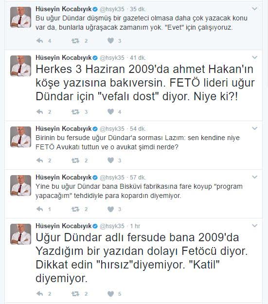 AK Parti İzmir Milletvekili Hüseyin Kocabıyık ile davalık olan ve açtığı tazminat davasını kazanan Uğur Dündar’ın bugün köşesine taşıdığı ‘keser döner, sap döner’ başlıklı yazısında yaptığı alıntılar adeta fırtına kopardı.