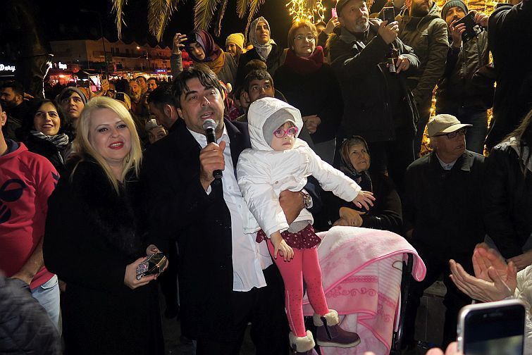 Meydanı dolduran vatandaşlar, Foça Belediyesi’nce düzenlenen yeni yıl programı için ışıklar ve dekorla süslenen Demokrasi Meydanı’nda, Dj Tolga’nın çaldığı hareketli şarkılar eşliğinde mutlulukla dans ettiler.