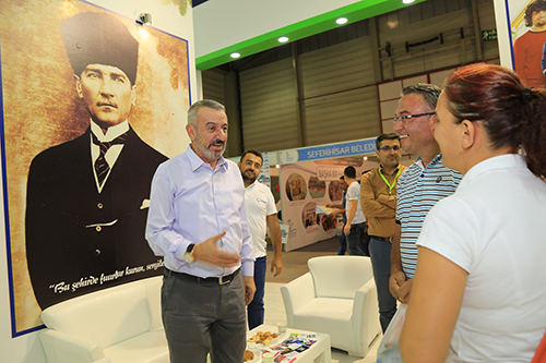 Fuar ziyaretçileriyle bir araya gelen Belediye Başkanı Halil İbrahim Şenol, vatandaşların istek ve taleplerini dinliyor, talep edenlerle bol bol fotoğraf çektiriyor.