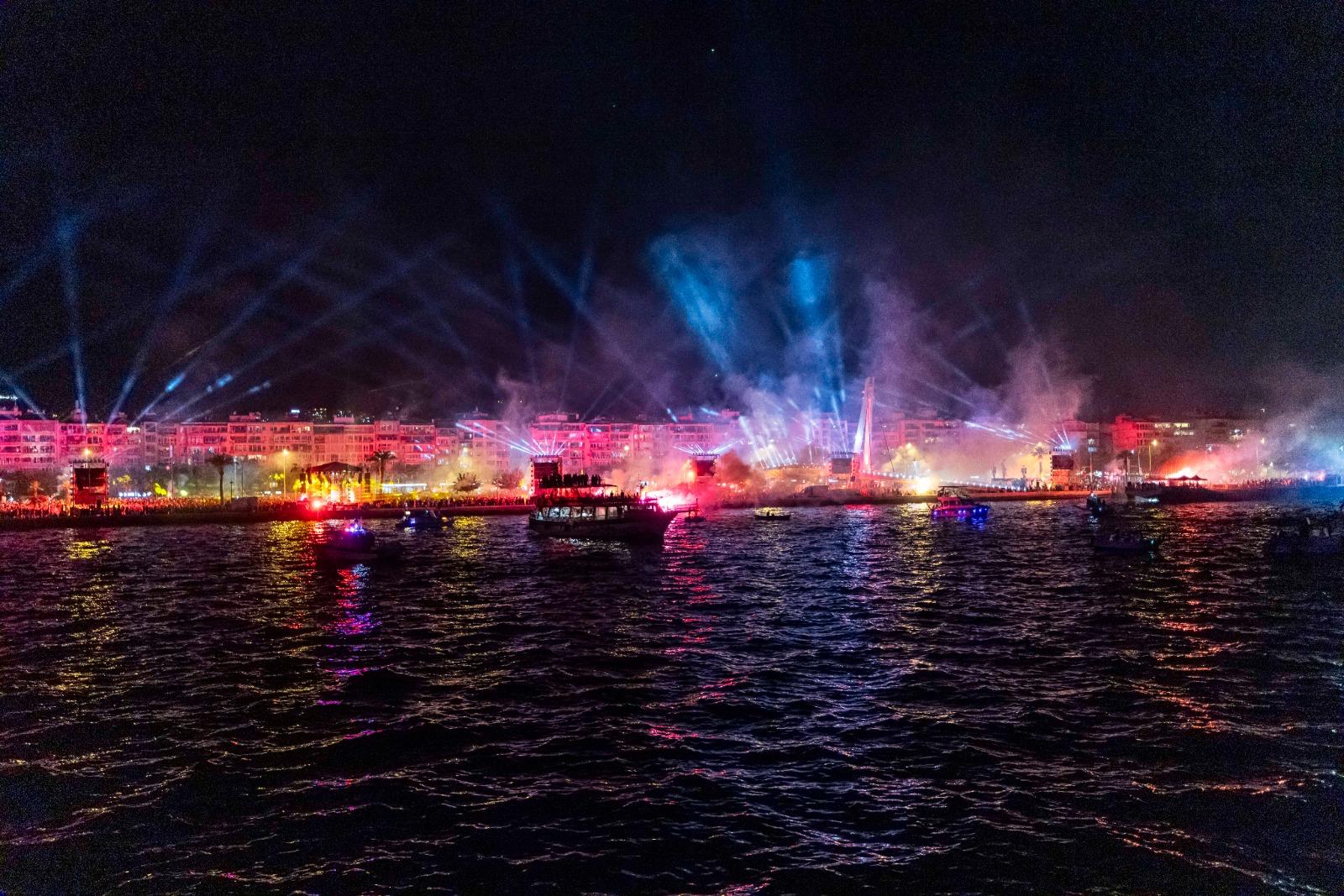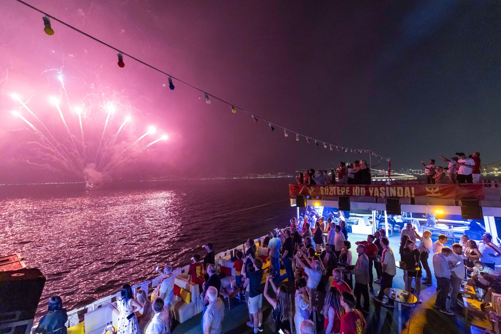Göztepe Sahili şeridi boyunca bir kilometrelik alana yayılan kutlamalarda sık sık marşlar ve Göztepe ile özdeşleşen şarkılar çalınırken, gecenin en etkileyici anı ise meşale ve havai fişek gösterisi oldu. Meşaleler ve havai fişekler İzmir’i aydınlattı, gökyüzü sarı-kırmızıya büründü. Kutlamalar, DJ performansları ve ışık gösterileri ile devam etti.