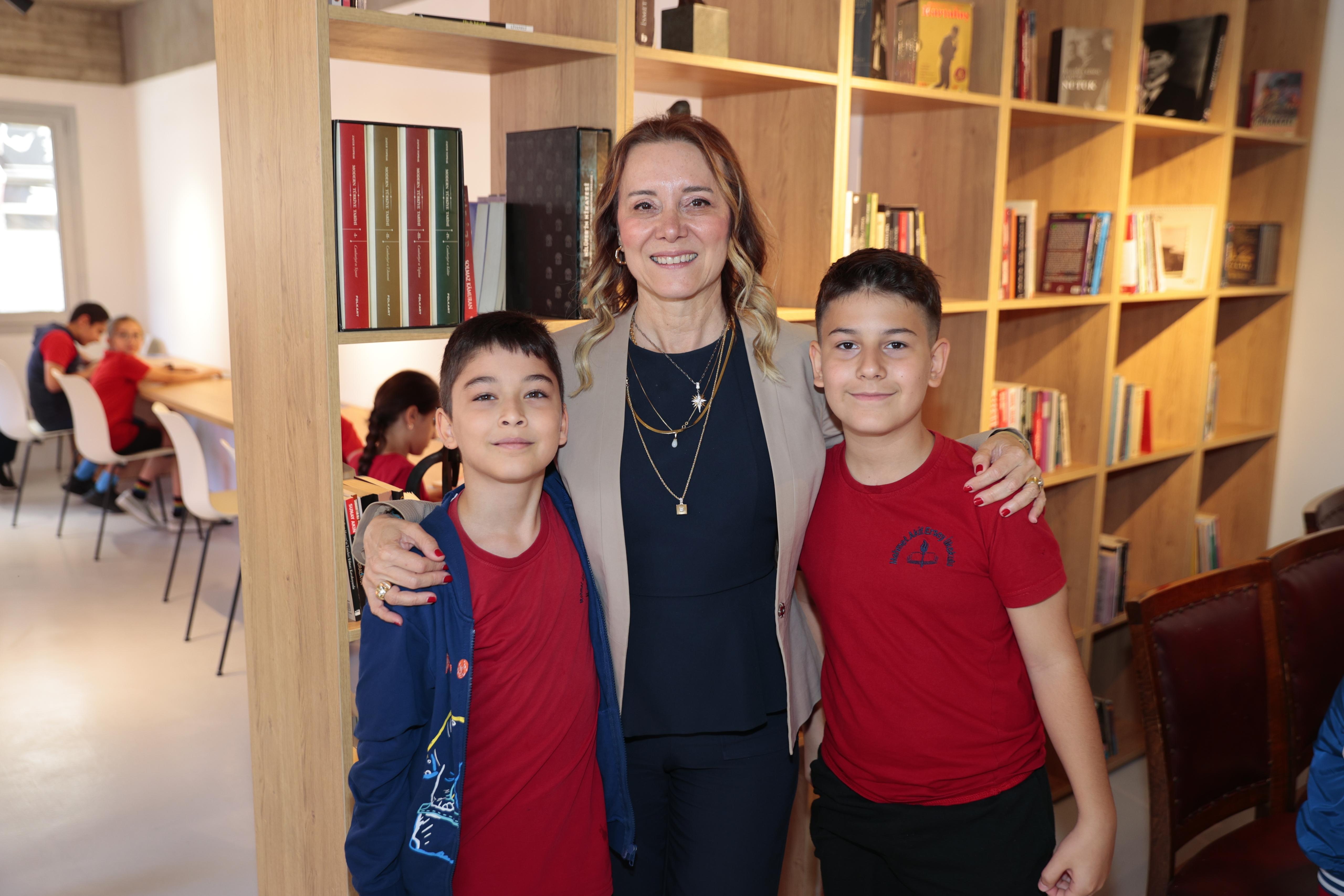 Kütüphaneden yararlanan öğrencilerle yakından ilgilenen Konak Belediye Başkanı Nilüfer Çınarlı Mutlu, “Sizi burada gördüğüm için çok mutluyum. Bu kütüphaneyi sizlerin istediğiniz zaman gelip kitap okumanız, ders çalışmanız için hizmete kazandırdık. Buraya gelip arkadaşlarınızla birlikte ödevlerinizi yapabilirsiniz. Burası siz çocuklarla cıvıl cıvıl olduğunda, dolup taştığında biz çok mutlu oluyoruz. Kütüphanemiz her zaman kullanımınıza açık” dedi.