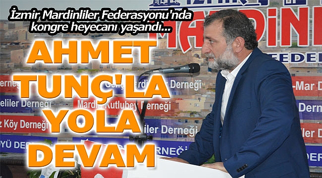 Olağan Genel Kurulda oyların tümünü alarak tekrar başkan seçilen Ahmet Tunç, kürsüye gelerek bir konuşma gerçekleştirdi. Konuşmasında İzmir’deki Mardinli hemşerilerine hizmet etmek amacıyla yola çıktığını ifade eden Tunç, “Bizleri bu önemli günde yalnız bırakmayan CHP Basınla İlişkilerden Sorumlu Genel Başkan Yardımcısı, milletvekilimiz Tuncay Özkan, bir diğer değerli milletvekilimiz Bedri Serter, değerli Bilal Doğan, Koçali ağabeyimiz, Fevzi Bayram ağabeyimiz ve adını sayamadığım birbirinden değerli dostlarımıza zaman ayırıp geldikleri için teşekkür ediyorum. Federasyonumuzun geçen yıllarında başkanlık yapmış Mehmet Şakir Irmak, Beşir Tunç ve bu federasyona hizmet etmiş tüm hemşerilerime hizmetlerinden dolayı ayrı ayrı şükranlarımı sunuyorum. Federasyonumuzun 4. Dönem yönetim kurulu listemizin siz değerli delegelerimiz nezdinde kabulünden dolayı çok mutlu olduğumu dile getirmek istiyorum. Üzerimize yüklenen sorumluluğun fazlasıyla farkında olduğumuzu bilmenizi isterim” şeklinde konuştu.