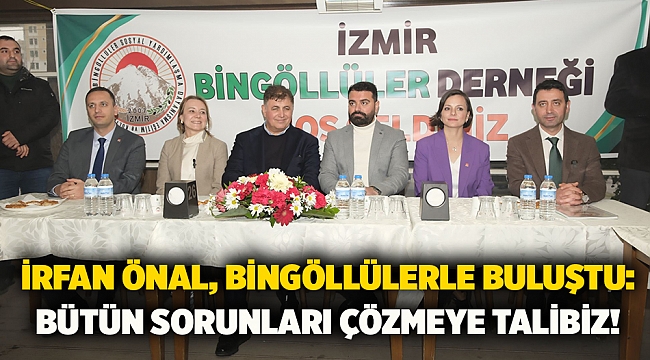Cumhuriyet Halk Partisi (CHP) Bayraklı Belediye Başkan adayı İrfan Önal saha çalışmaları kapsamında İzmir Bingöllüler Derneği’nin düzenlediği dayanışma toplantısına katıldı. Buluşmaya İzmir Büyükşehir Belediye Başkan Adayı Cemil Tugay, Konak Belediye Başkan Adayı Nilüfer Çınarlı Mutlu, Bornova Belediye Başkan Adayı Ömer Eşki ve Karabağlar Belediye Başkan Adayı Emine Helil İnay Kınay da katıldı.