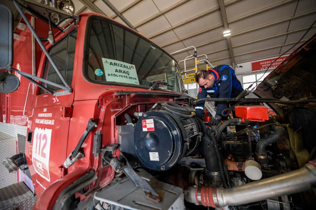 Atölye Formeni Mustafa Okkan, İzmir Büyükşehir Belediyesi İtfaiye Dairesi Başkanlığı envanterindeki tüm araç, gerecin bakım ve onarımını yaptıklarını söylüyor. İtfaiye araçlarının periyodik bakımlarını düzenli olarak gerçekleştirdiklerini anlatan Okkan, “Afetlerde sahaya gidip teknik destek veriyoruz. Biz de olağanüstü durumlarda itfaiyecilerle birlikte hareket ediyoruz” dedi.