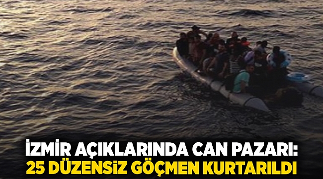 Çeşme açıklarında da Sahil Güvenlik Gemisi tarafından lastik botta bir grup düzensiz göçmen olduğu tespit edildi. Ekiplerce, durdurulan lastik bottaki 3'ü çocuk 22 düzensiz göçmen yakalandı.