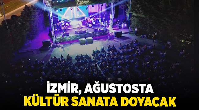 İzmirliler ağustos ayında konser, sergi, sinema ve tiyatro gibi pek çok etkinlikle buluşacak. İzmir Büyükşehir Belediyesi Kültür ve Sanat Dairesi Başkanlığı tarafından düzenlenen veya desteklenen etkinlikler, kenti kültür sanata doyuracak.