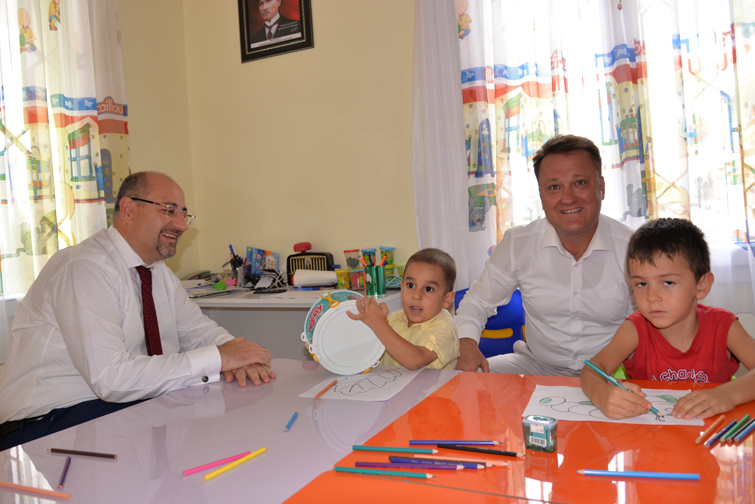 Fiziksel, psikolojik ve ekonomik şiddete maruz kalan, sosyal ve politik dışlanmaya ve her türlü ayrımcılığa uğrayan kadınlara; hukuksal, psikolojik ve sosyal danışmanlık hizmeti vermek amacıyla açılan ve Menemen Belediyesi’nin kadınlara yönelik en önemli projelerinden olan Kadın Danışma Merkezi ve Çocuk Oyun Evi’ni de gezen Buğra Gökçe, Başkan Aksoy’dan merkezle ilgili bilgileri aldı, merkeze gelen çocuklarla kısa bir sohbet gerçekleştirdi.