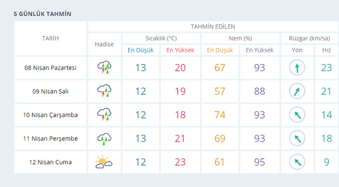 İŞTE 5 GÜNLÜK HAVA TAHMİN RAPORU