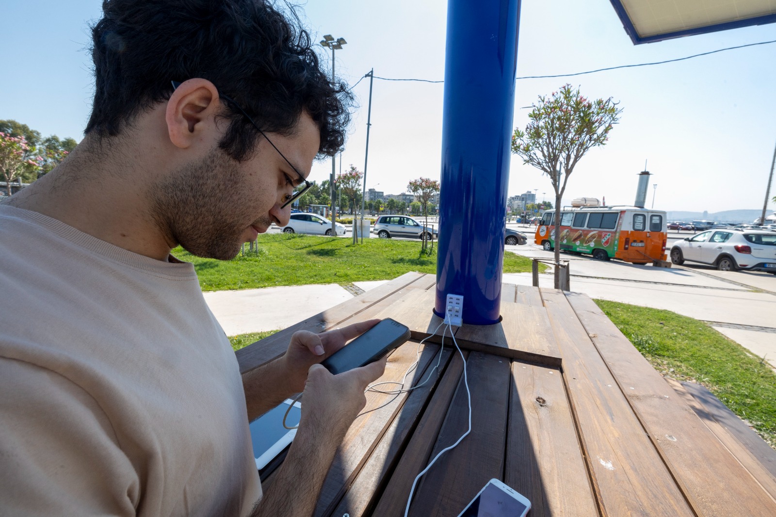 Mahsun Tamur da bu örnek projenin insanların hayatına dokunduğunu vurgulayarak, “İnsanlar elektronik eşyalarını şarj edebilmek için kafelerde dolaşmak zorunda kalıyor. Buna gerek duymadan, İzmir Büyükşehir Belediyesi’nin bu çalışmasından faydalanarak, temiz enerji ile rahat bir şekilde telefonlarını veya tabletlerini şarj edecekler” dedi.