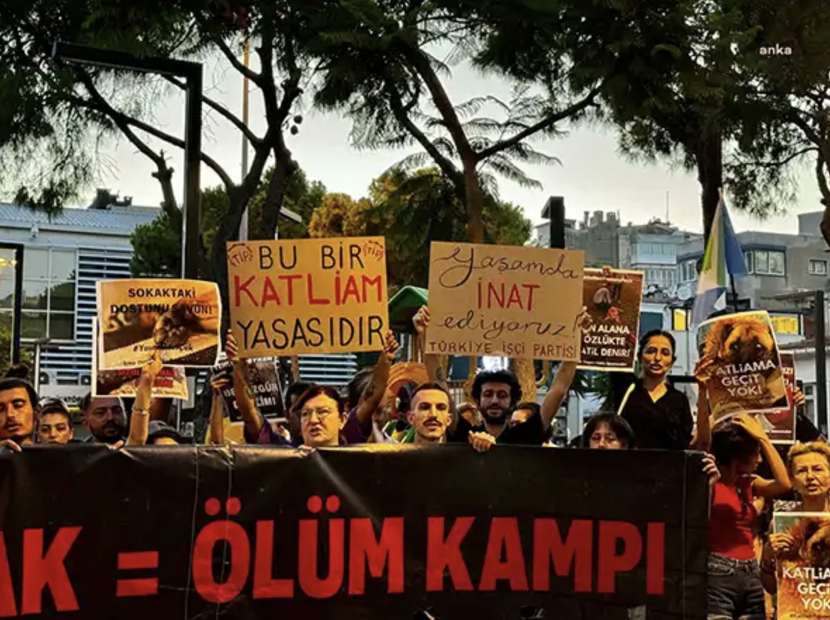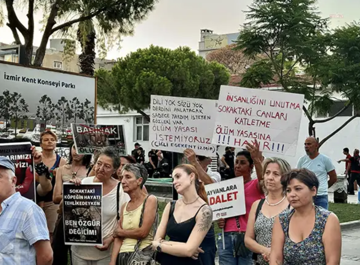 Adalet ve Kalkınma Partisi'nin TBMM Başkanlığı’na sunduğu sokak hayvanlarıyla ilgili yasa teklifine karşı İzmir'de başlatılan protesto eylemleri üçüncü gününde de devam etti. Hayvanseverler akşam saatlerinde Alsancak Kıbrıs Şehitleri Caddesi ÖSYM binası önünde toplanarak oturma eylemi yaptı.
