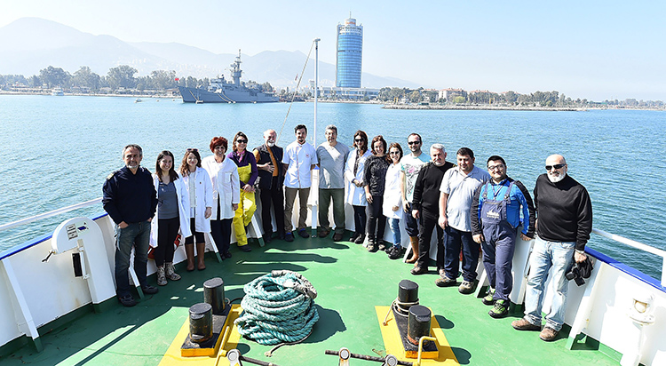 Proje Koordinatörü Prof. Dr. Filiz Küçüksezgin, İZSU Genel Müdürlüğü ile birlikte yürüttükleri İzmir Körfezi Oşinografik İzleme projesini büyük kanal projesinin devreye girdiği 2000 yılından bu yana aralıksız sürdürdüklerini belirterek, Körfez’de giderek artan bir iyileşme sürecinin yaşandığına dikkat çekti. Körfez’deki fiziksel, kimyasal ve biyolojik değişkenleri ölçtüklerini belirten Prof. Küçüksezgin, “Anında değerlendirmemiz gereken numuneleri geminin laboratuvarında inceliyoruz. Balık örneklerini ve çamur örneklerini ise dondurarak götürdüğümüz enstitünün kimya laboratuvarında değerlendiriyoruz. 15 istasyonda kimyasal değişkenlere bakıyoruz. Seçilmiş bölgelerden aldığımız balık örneklerinde ağır metal analizi yapıyoruz. 18 noktada ise deniz dibi çamur örneklerinin metal analizinde bulunuyoruz” dedi.