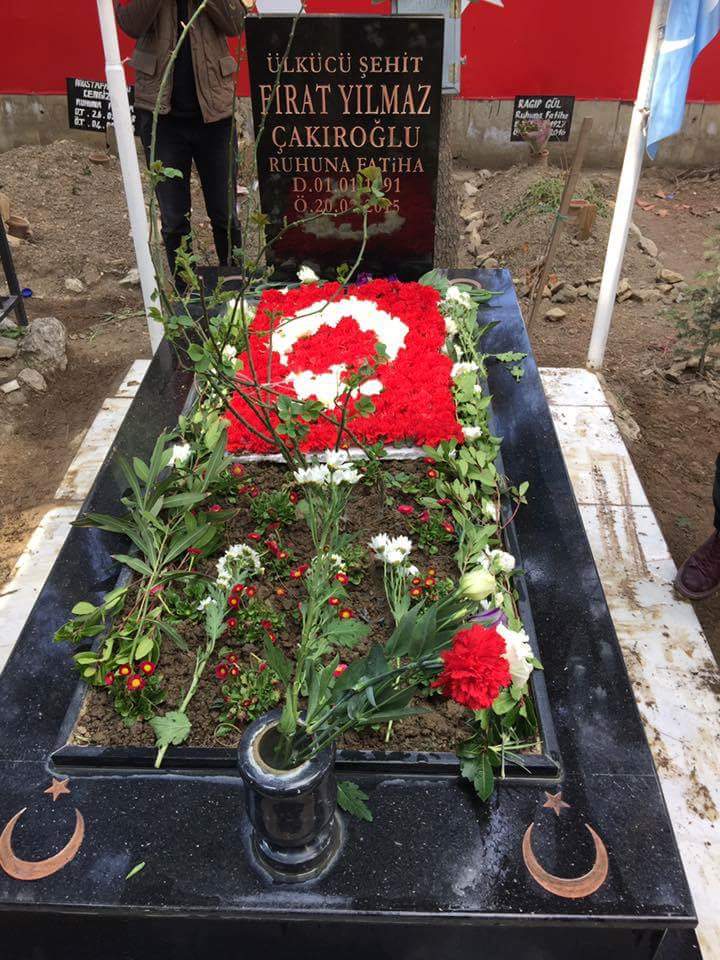 2 yıl önce Ege Üniversitesi’nde PKK sempatizanı N.S. tarafından uğradığı saldırı sonucu bıçaklanarak hayatını kaybeden Ülkü Ocakları Ege Üniversitesi sorumlusu Fırat Yılmaz Çakıroğlu mezarı başında dualarla anıldı. Lokma ve helva ikramının yapıldığı törende Kuran okunmasının ardından konuşan Ülkü Ocakları İzmir İl Başkanı Bilgehan Ağbaba, “Biliyorsunuz, iki yıl önce haince ve alçakça bir saldırı sonucu arkadaşımız Fırat Çakıroğlu şehit oldu. Bu saldırı öncesinde arkadaşımız Fırat Çakıroğlu ve biz gerek dekanlığı, gerek özel güvenliği, gerek rektörlüğü ve gerekse İzmir İl Emniyet Müdürlüğü’nü defaatle uyardık. Basın açıklamaları, protesto yürüyüşleri ve imza kampanyaları gerçekleştirdik. Ancak o dönem bu saydığımız kurumların hiçbiri bizi ve Fırat’ımızı dikkate almadı. Çözüm süreci denilen bir beladan dolayı bu öğrenci kılıklı teröristlere bilerek ve istenerek göz yumuldu. Yine akademisyen kılıklı terör sevicileri de bu teröristlere açık destek verdi. Ve göz göre göre bu vahim olay yaşandı.” Diye konuştu.