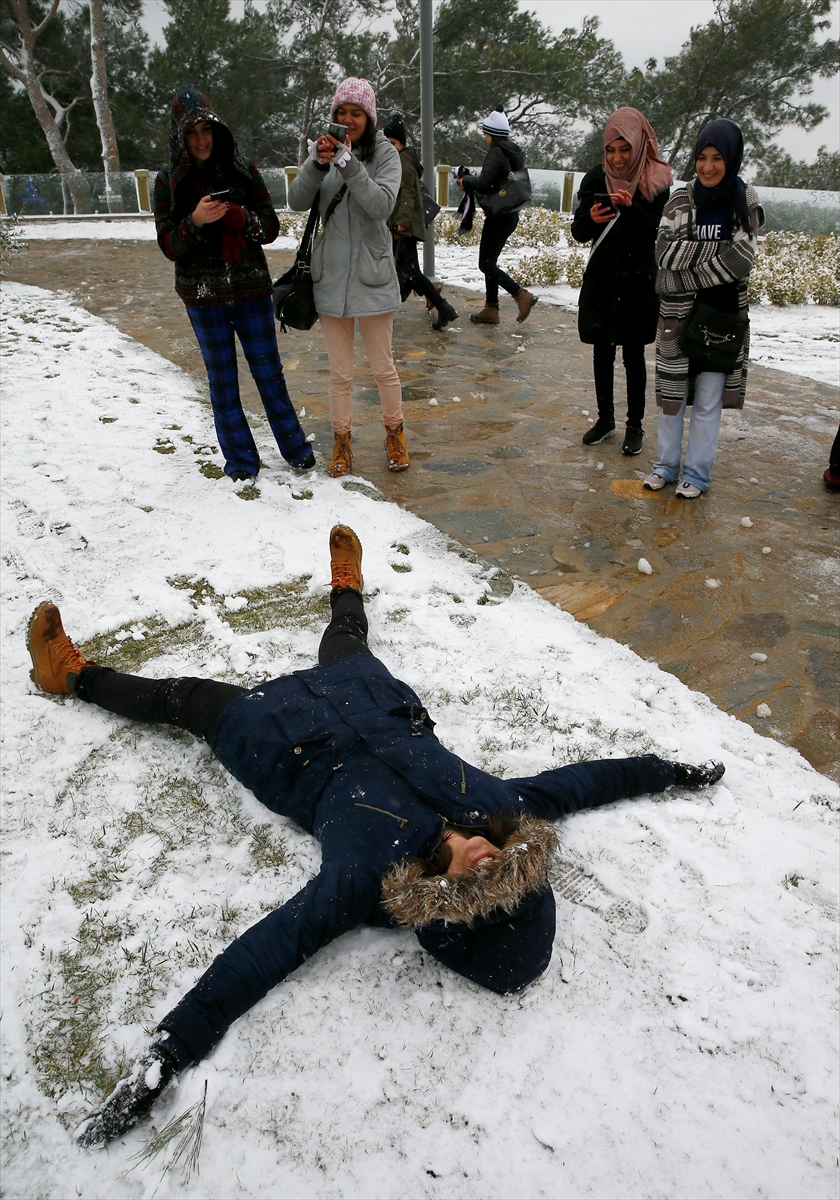 Gazetem İzmir - İzmir'de hava sıcaklığının gündüz 2 dereceye kadar düşmesiyle birlikte kar yağışı başladı. Bu duruma alışık olmayan İzmirli Gençler, teleferik tesislerinde kardan adam yaparak fotoğraf çektirdi, yağan karın tadını doyasıya çıkardı.
