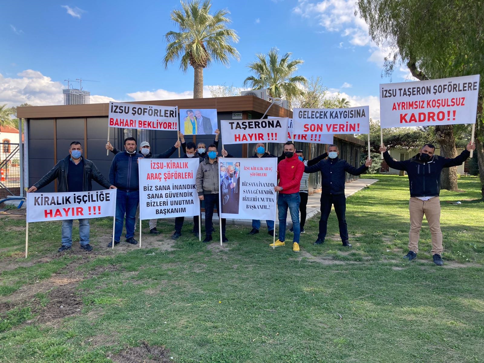 Evrensel'den Eda Aktaş'ın haberine göre, İzmir Su ve Kanalizasyon İdaresi Genel Müdürlüğünün (İZSU) kiralık araçlarında şoför olarak çalışan taşeron işçiler iş güvencesi istiyor. Taşeron işçileri ilgilendiren ihale yaklaşık iki ay sonra bitecek. Taşeronda iş güvencelerinin olmadığını, her ihale sürecinde işsiz kalma kaygısı yaşadıklarını dile getiren işçiler İzmir Büyükşehir Belediye Başkanı Tunç Soyer’e seslenerek; belediye şirketinde istihdam edilmek istediklerini söyledi.