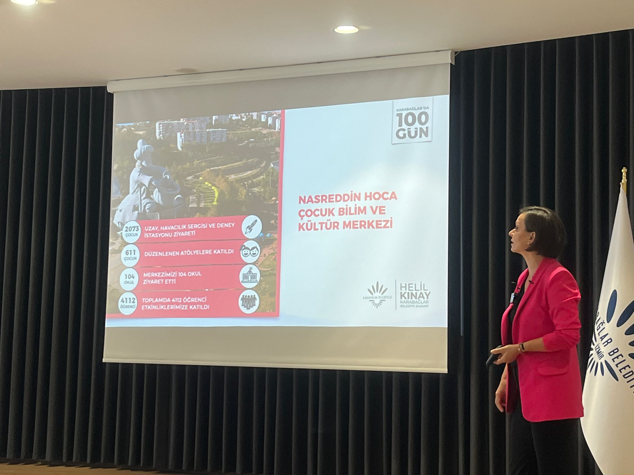 100 günlük süreçte 15 konser anma, gösteri, kutlama 10 neşeli sokaklar mutlu çocuklar şenliği, 6 sergi, 5 tiyatro gösterisi, 2 söyleşi ve imza günü, 6 çok kapsamlı etkinlik düzenlenirken Karabağlar Belediyesi, mecliste onaylanan kararla birlikte Karabağlar Şehir Tiyatrosu kuruluyor.