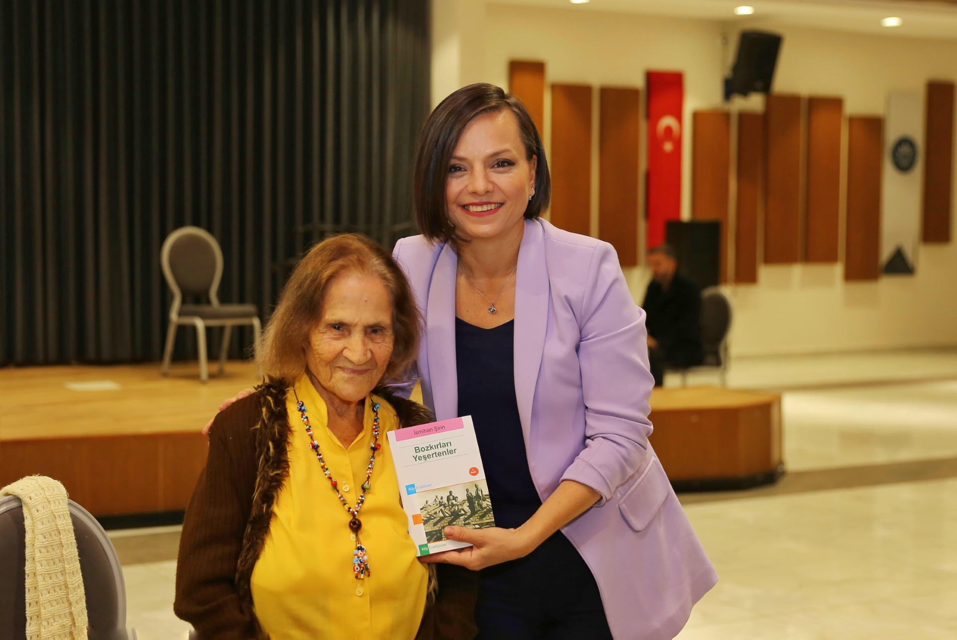 Köy Enstitüsü Mezunu sınıf öğretmeni ve yazar İsmihan Şirin'in mandoliniyle mini bir konser verdiği gecede Başkan Helil Kınay, Cumhuriyet’in ilk kadın öğretmenlerinden Mediha Çalın’ın torunu Zeynep Çalın Bekgöz’e günün anısına bir hediye vererek teşekkür etti.