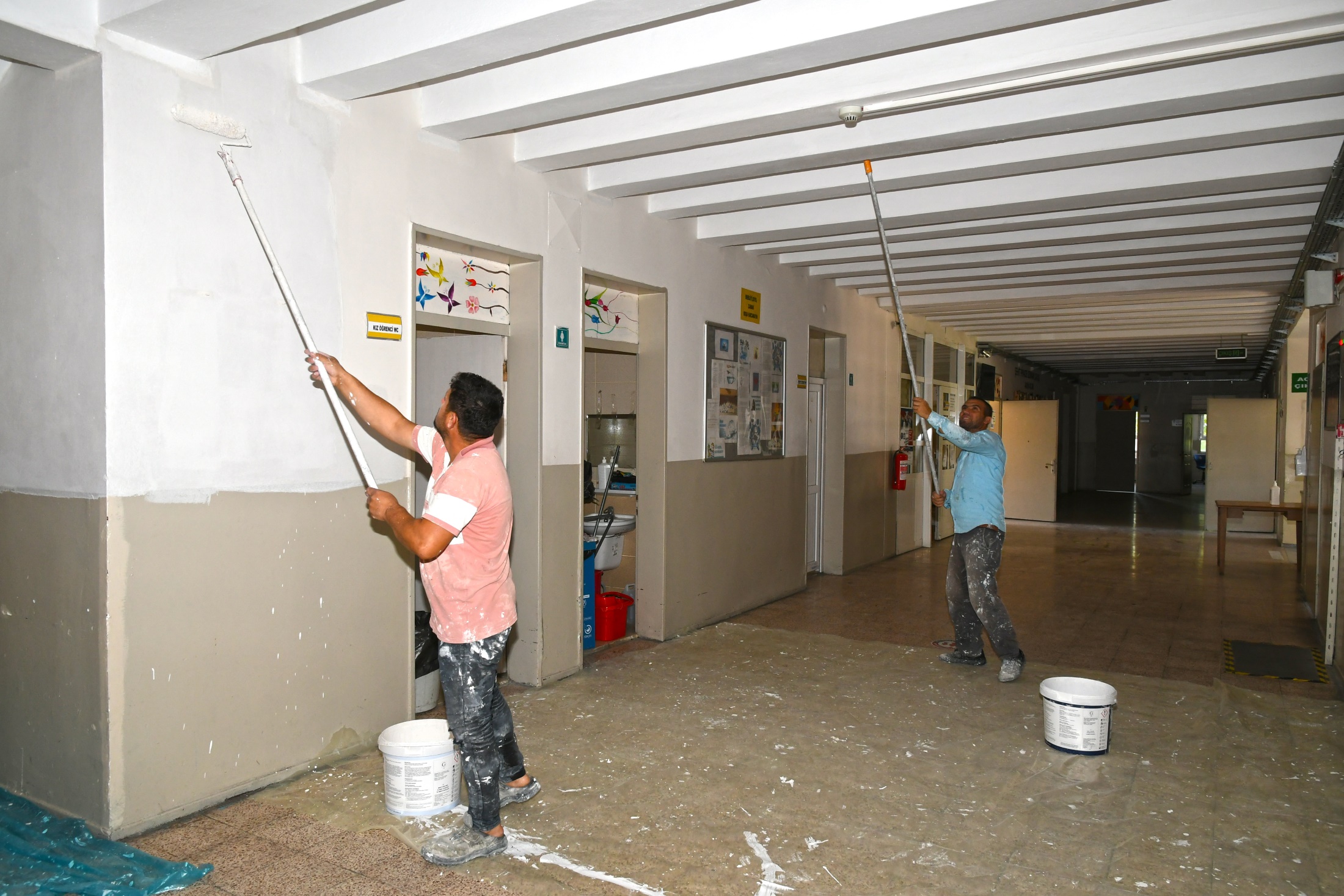 Çalışmalar, 12 Eylül'de başlayacak yeni eğitim öğretim dönemi öncesi aralıksız devam ediyor. Öğrencilerin daha sağlıklı koşullarda eğitim görmesini hedefleyen Karabağlar Belediyesi, okulların iç duvar boyamalarının yanı sıra bahçe temizliklerini de yapıyor. Bahçelerde bulunan spor ve oyun alanları çizgileri de yenileniyor.