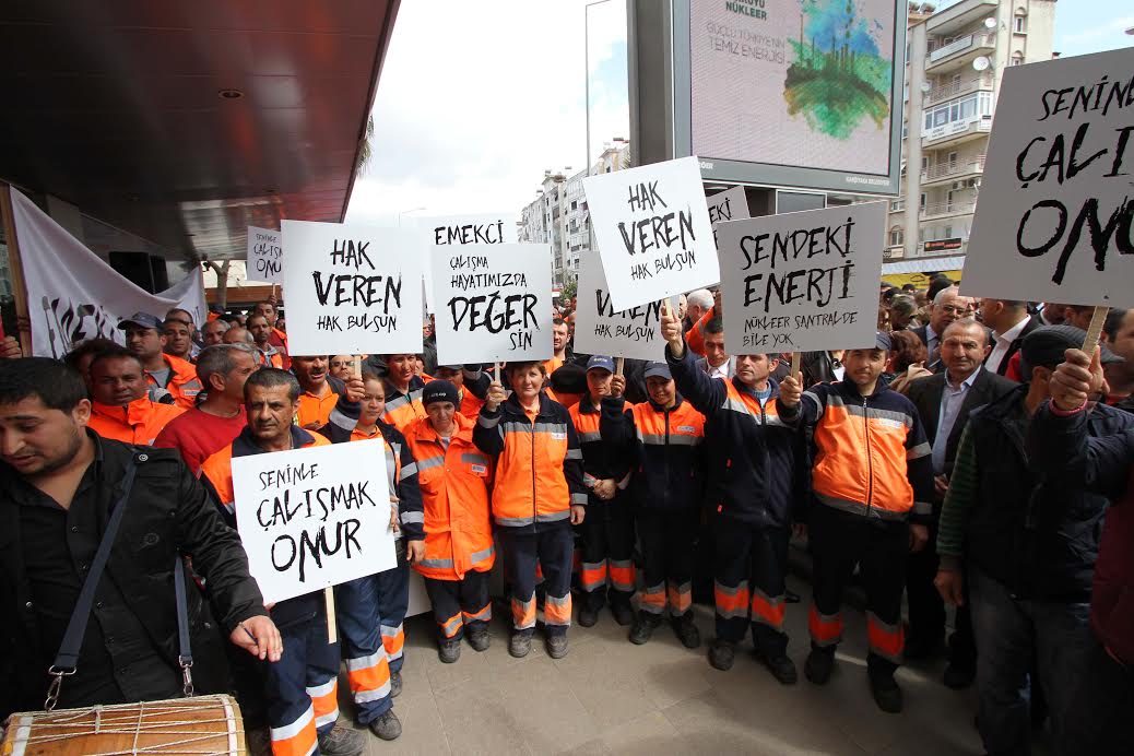 Davul zurna eşliğinde oyunlar oynayan çalışanlara, pilav ikram edildi. Başkan Akpınar da belediye önüne çıkarak personeline seslendi. Başkan’ın sözleri sık sık alkışlarla ve sloganlarla kesildi. Başkan Akpınar “Taşeronuyla, memuruyla mutlu bir belediyeyiz. Bunu kimse bozamayacak” ifadelerini kullandı.