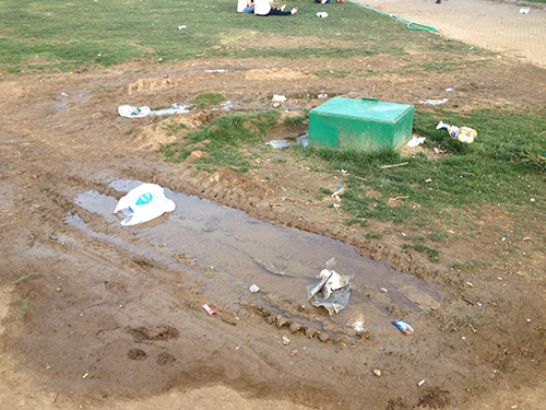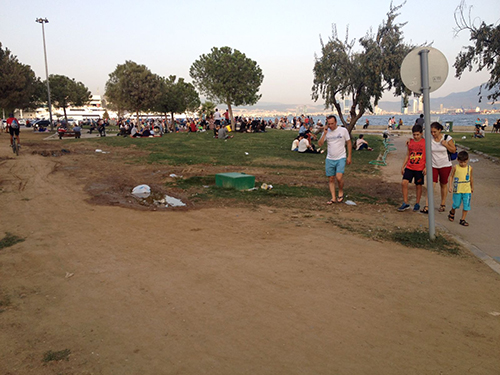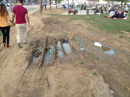 Resimlerde de görüldüğü üzere Karşıyaka Osman Bey Parkı karşısında kalan kısımdaki yeşil alan toprak halinde kalmış. Yapılan sulamadan sonra çamur olan kısımdan vatandaş geçemiyor, oturmak isteyenler oturamıyor.
