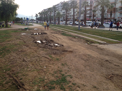 Gazetem İzmir - İzmir Büyükşehir Belediyesi tarafından ilçe sakinlerinin büyük bir kısmının istememesine rağmen yapılan tramvay sonrası Karşıyaka iskelesine yakın yeşil alan tarla gibi bırakıldı. Tramvayın çalışmaya başlamasına rağmen düzeltilmeyen yeşil alanı gören vatandaşlar WhatsApp ihbar hattımıza yolladığı resimlerle tepkisini gösterdi.