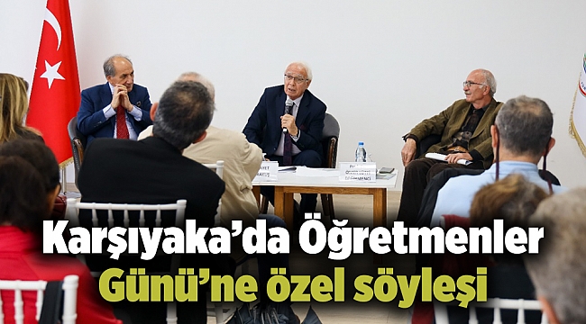 Söyleşide konuşan Karşıyaka Belediye Başkanı Dr. Cemil Tugay ise şunları ifade etti: “Babam öğretmen olduğu ve beni yetiştiren öğretmenlerime kendimi borçlu hissettiğim için şunu söylemek istiyorum: Her şeyden önce iyi yöneticiler, iyi devlet adamları yine öğretmenler tarafından yetiştiriliyor. Ailelerin de büyük etkileri, katkısı var ama yetişme dönemimizin önemli bir kısmını okullarda öğretmenlerle geçiriyoruz. Öğretmenlerin, sistemin getirdiği zorluklarla mücadele etmekten belki de bir şeyleri daha iyi hale getirmeye enerjileri kalmıyor. Bu ülke yeniden üretmek zorunda. İnsana insan olarak, canlıya canlı olarak değer veren; adaleti gözeten, eğitimi önemseyen, çağın gereklerini yerine getiren insanlara ihtiyacımız var. Öğretmenliğin bence asıl değerli tarafı o asaleti. Şu an gördüğümde sarılıp elini öpeceğim öğretmenlerim var. Babamın bir öğretmen olarak ne kadar fedakarca çalıştığını biliyorum. Öğretmenlik nedir deseniz öğrencisine sahip çıkmak; ona iyiliği, insanlığı öğretmektir derim. O öğretmenlerimizin hepsinin tek tek ellerinden öpüyorum. Öğretmenler gününü yürekten kutluyorum."