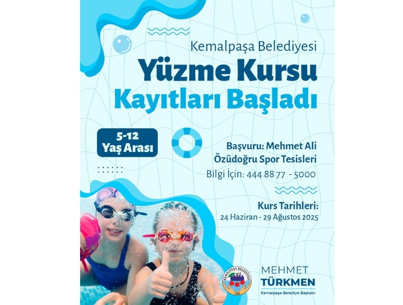 Kemalpaşa Belediyesi tarafından her yıl düzenli olarak gerçekleştirilen yaz dönemi yüzme kursları için kayıt süreci başladı. 5-12 yaş grubundaki miniklere yönelik planlanan eğitimler, 24 Haziran – 29 Ağustos 2025 tarihleri arasında Mehmet Ali Özüdoğru Spor Tesisleri’nde gerçekleştirilecek.