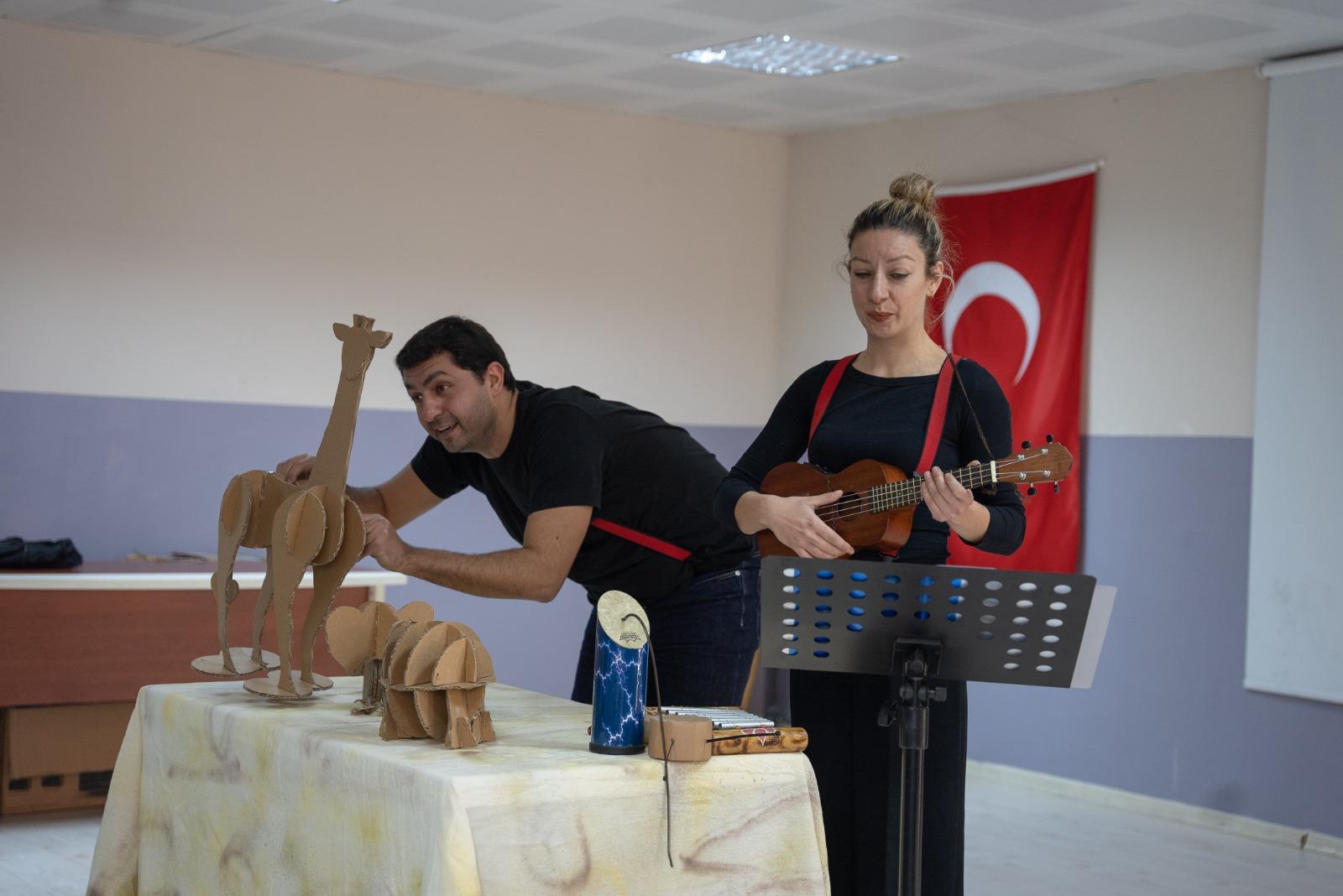 Çocukların hayal dünyasını renklendirerek onlara farklı bakış açıları kazandırmayı amaçlayan “Kendini Arayan Zürafa” oyunu sonrası çocuklara minik hediyeler de dağıtıldı. İzBBŞT, tiyatroyu toplumun her kesimine ulaştırma misyonu kapsamında farklı oyun ve projeler aracılığıyla İzmirliler ile buluşmaya devam edecek.
